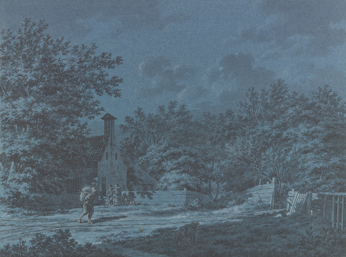 Gezicht op het 'Wijk op Zeeër hek', bij maanlicht