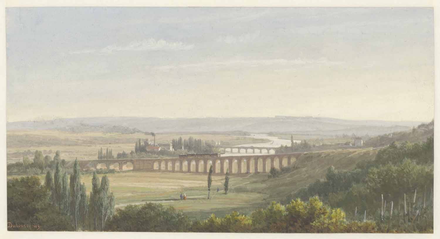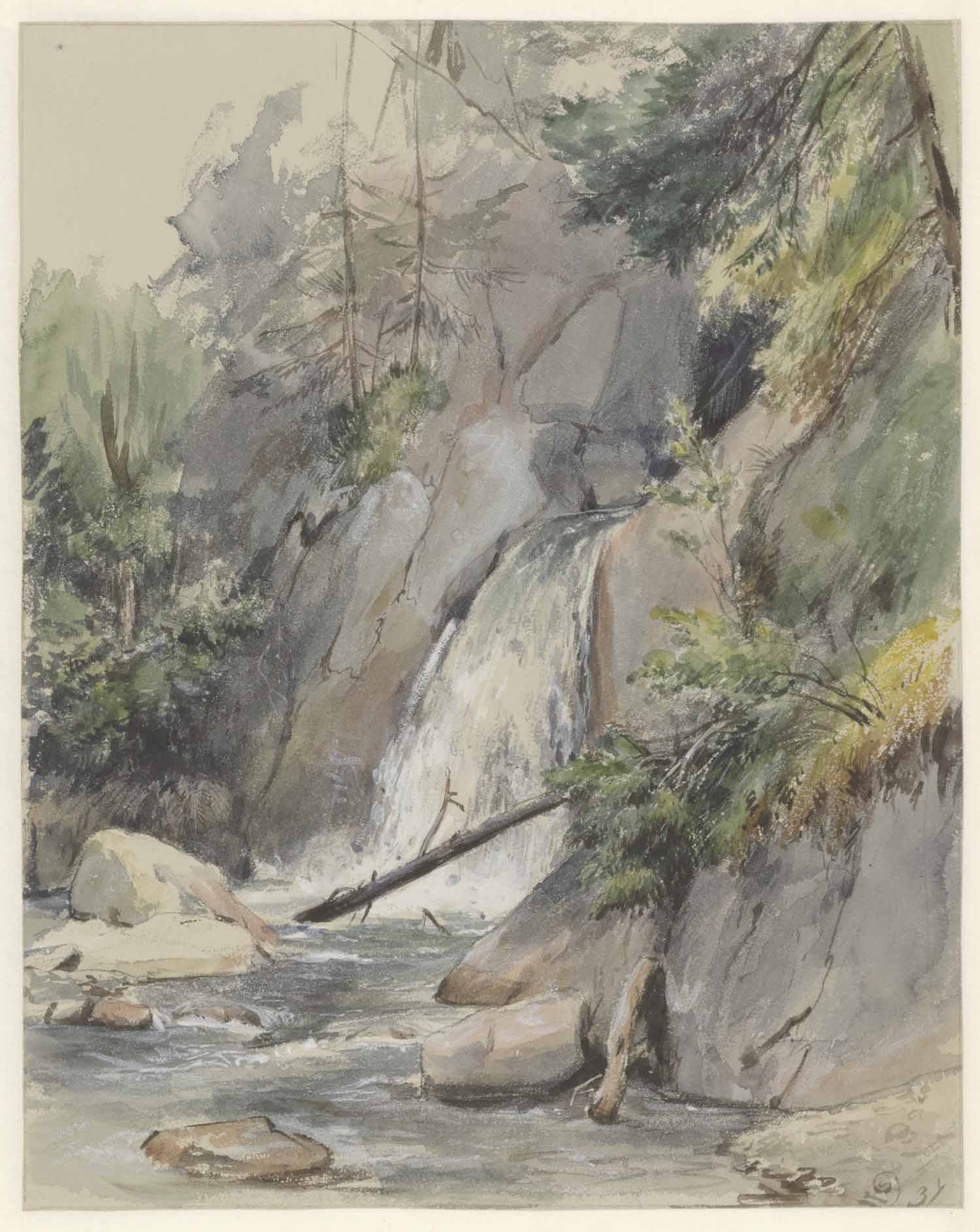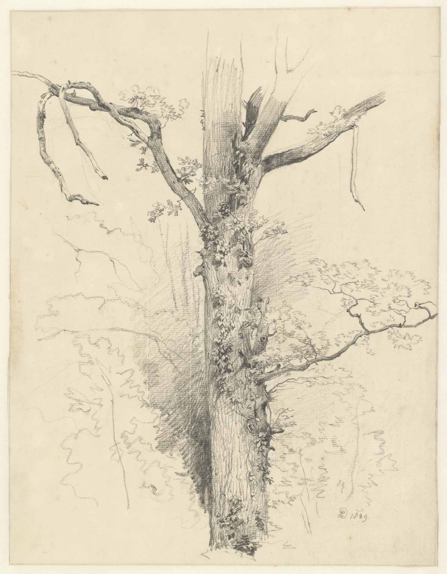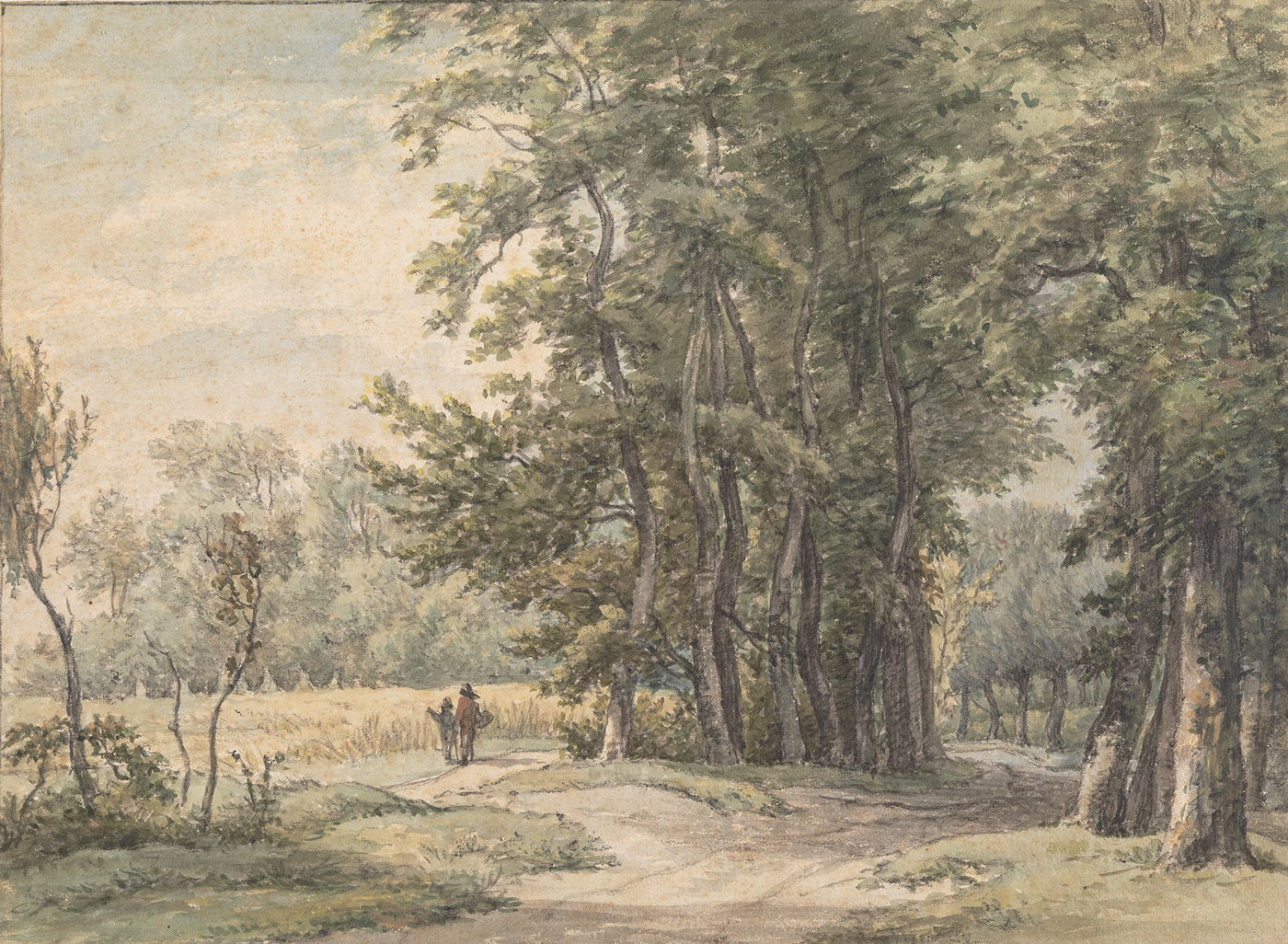 Studieblad met riviergezicht (Schiedam) boot met fig...