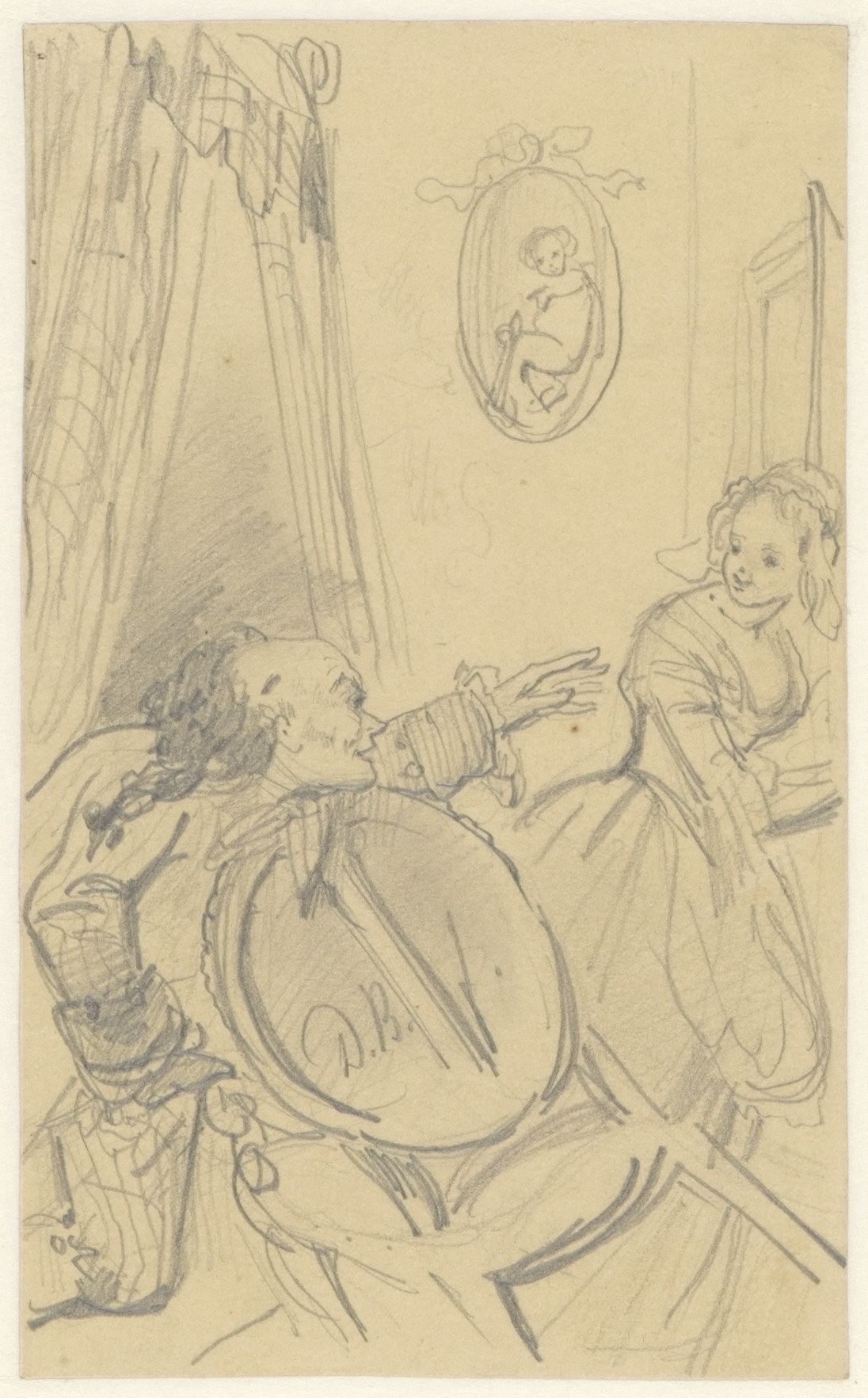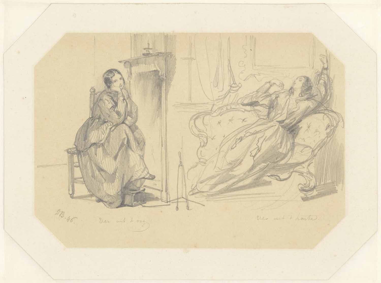 "Ver uit 't oog, ver uit 't hart" vrouw aan den haar...