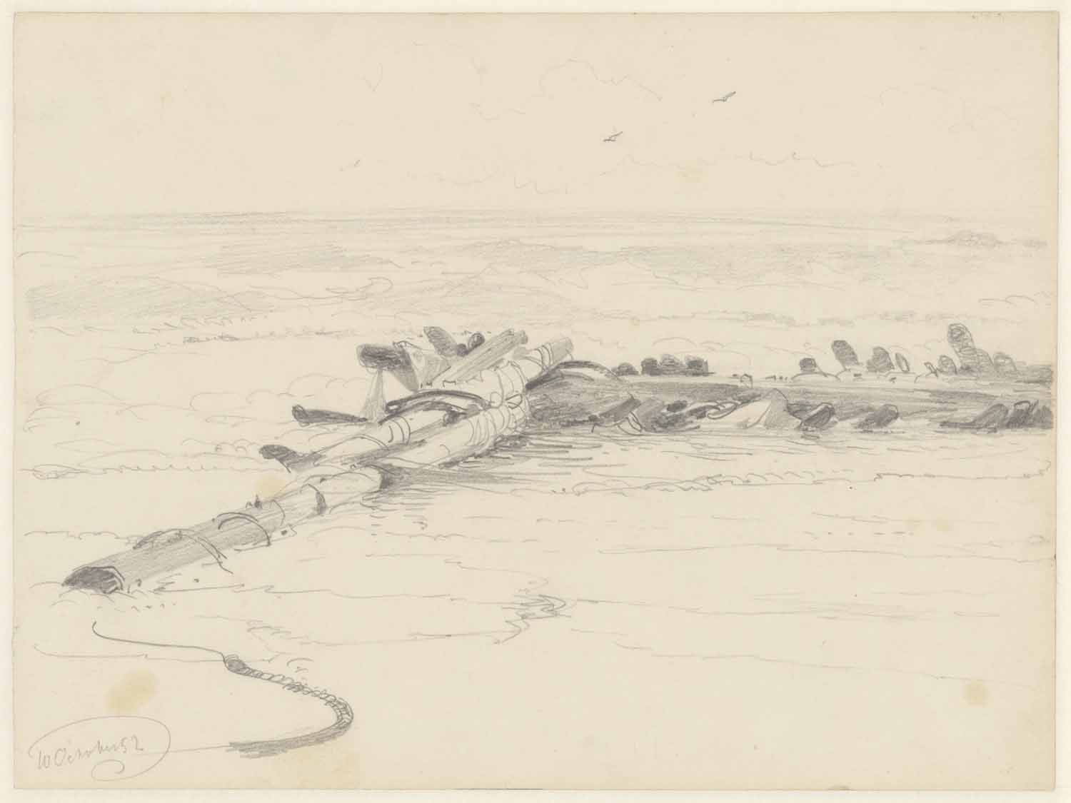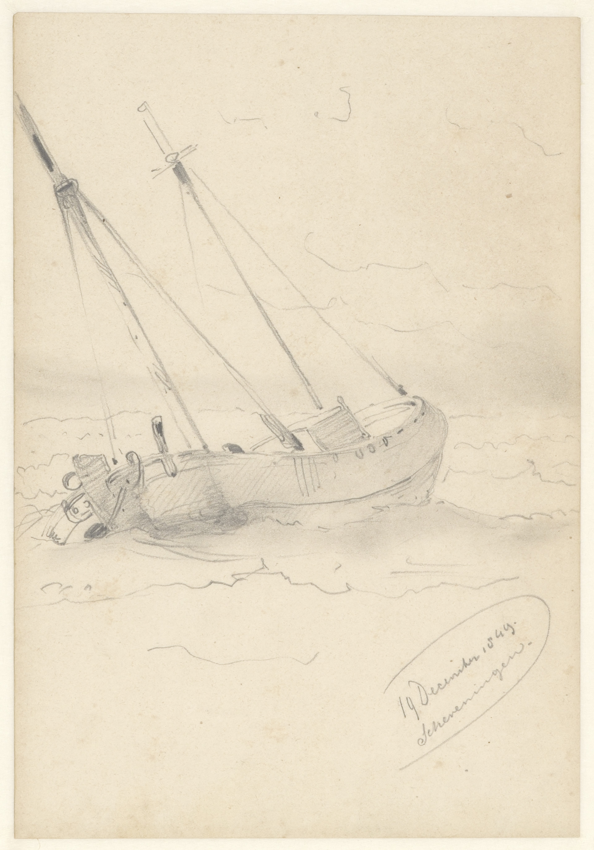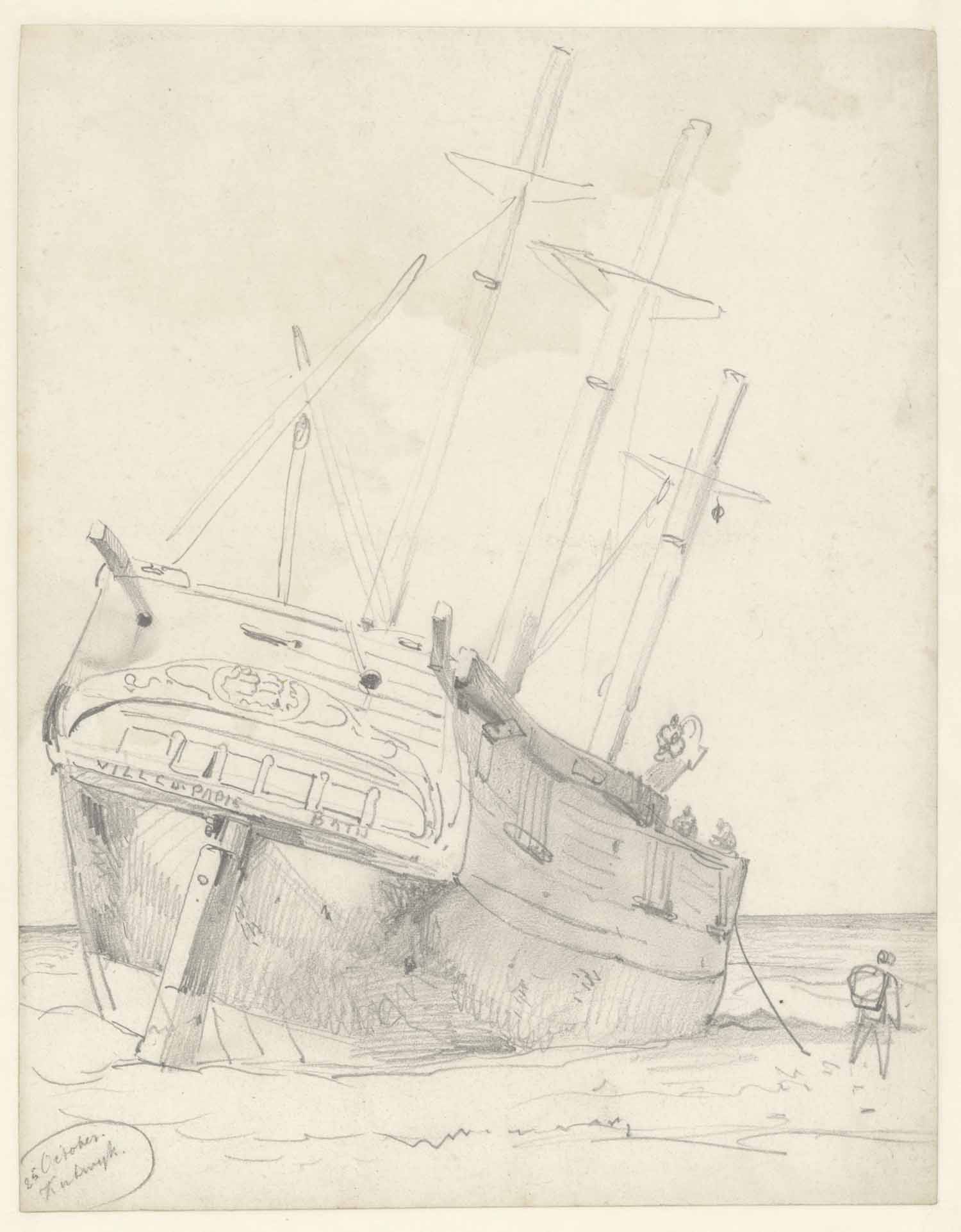 Gestrand schip te Scheveningen. Enige krabbels (verso)