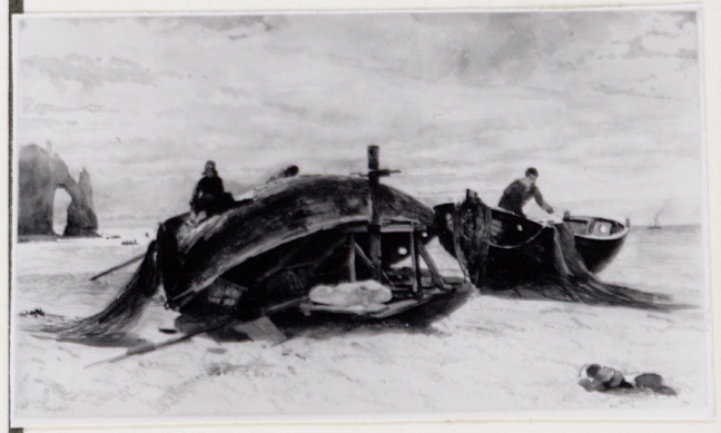 Het wrak der "Ville de Paris" op het strand bij Katwijk