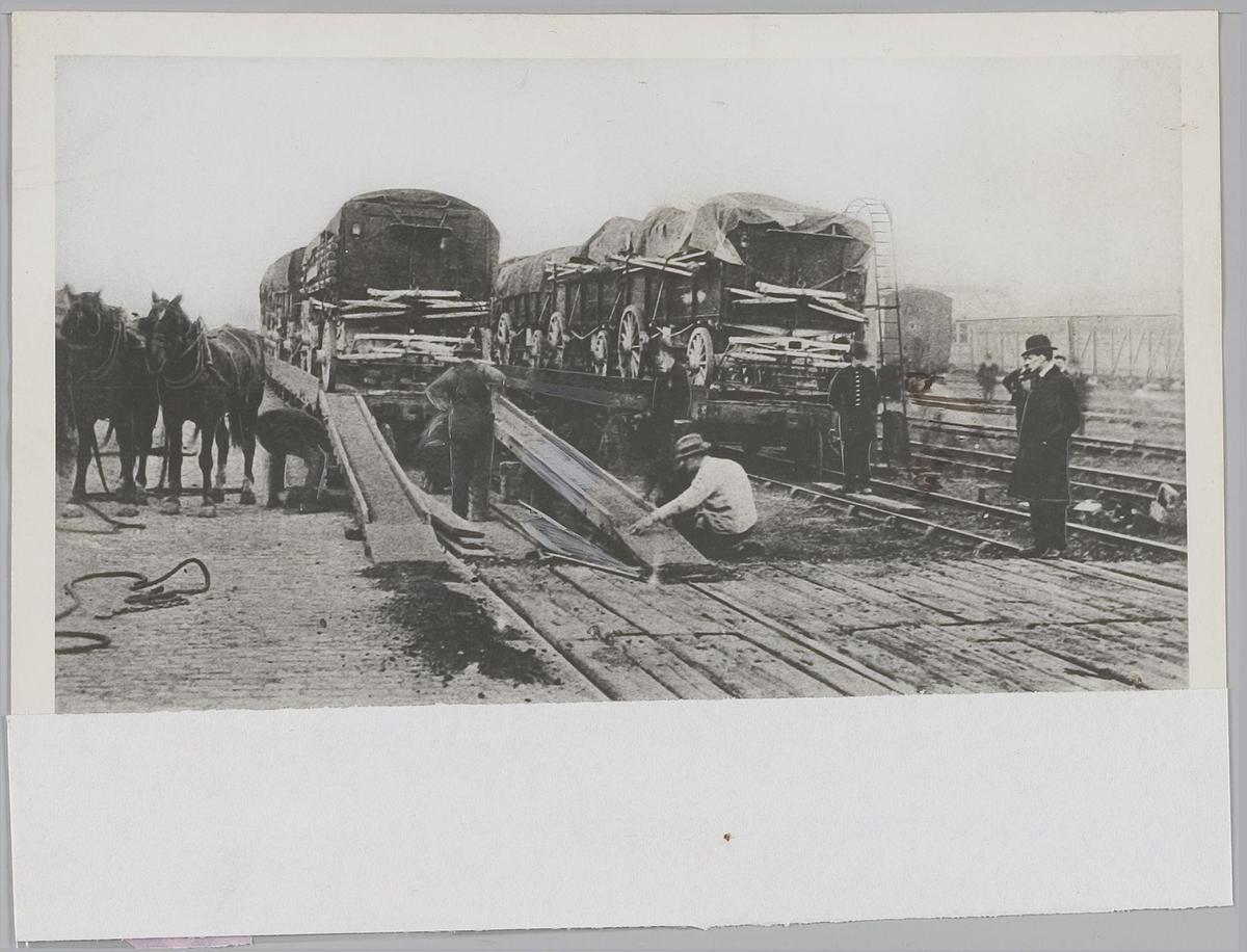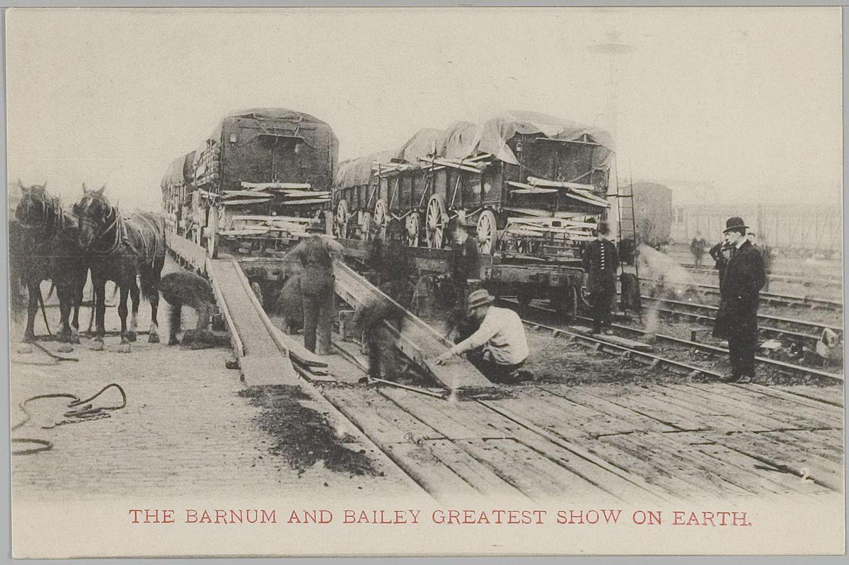 Het afladen van de Barnum & Bailey Circustrein op he...