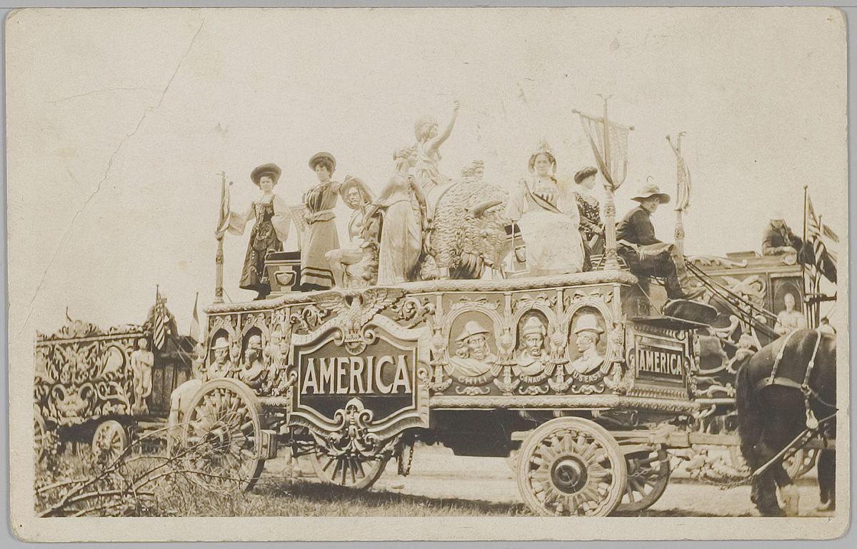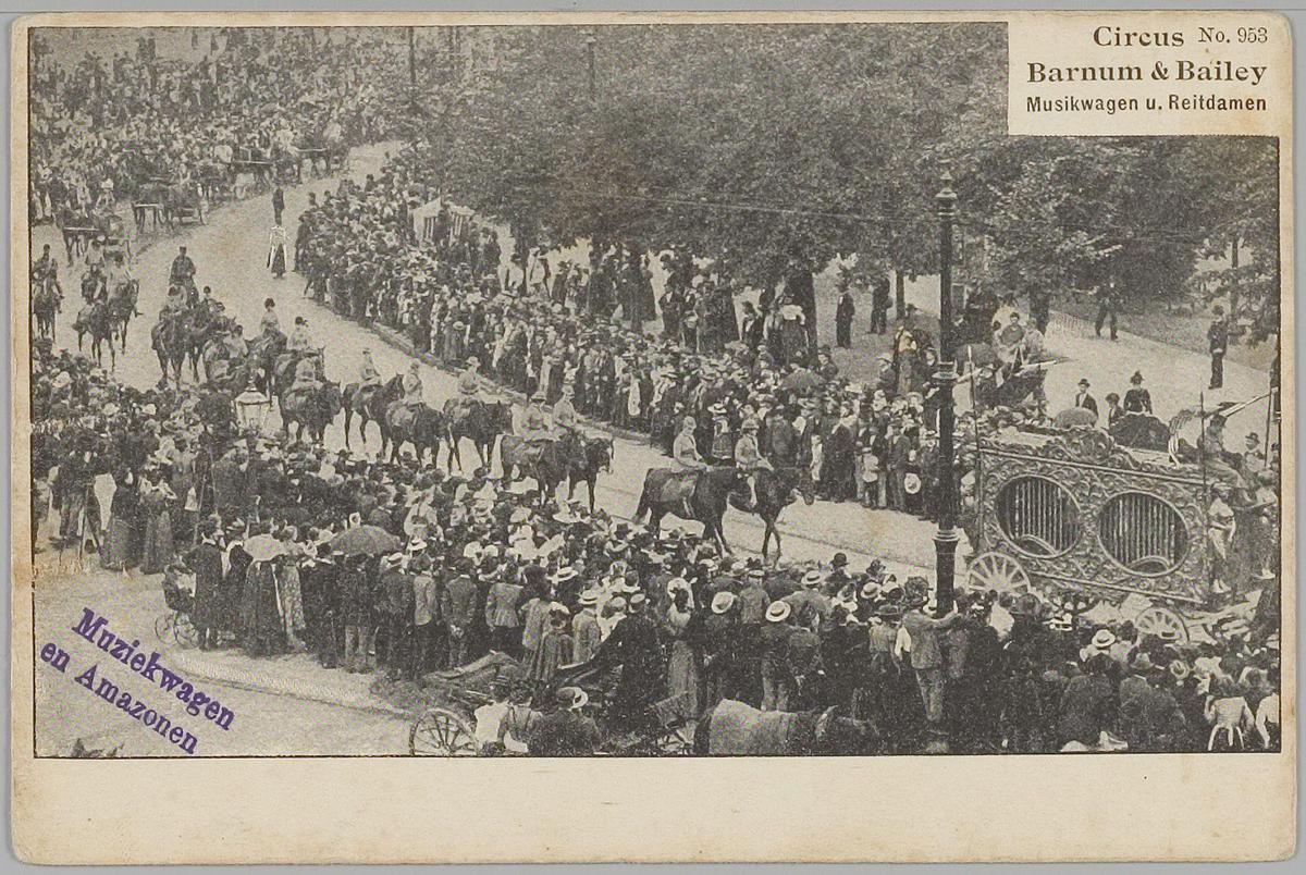 Circus Barnum and Bailey. Muziekwagen en Amazonen