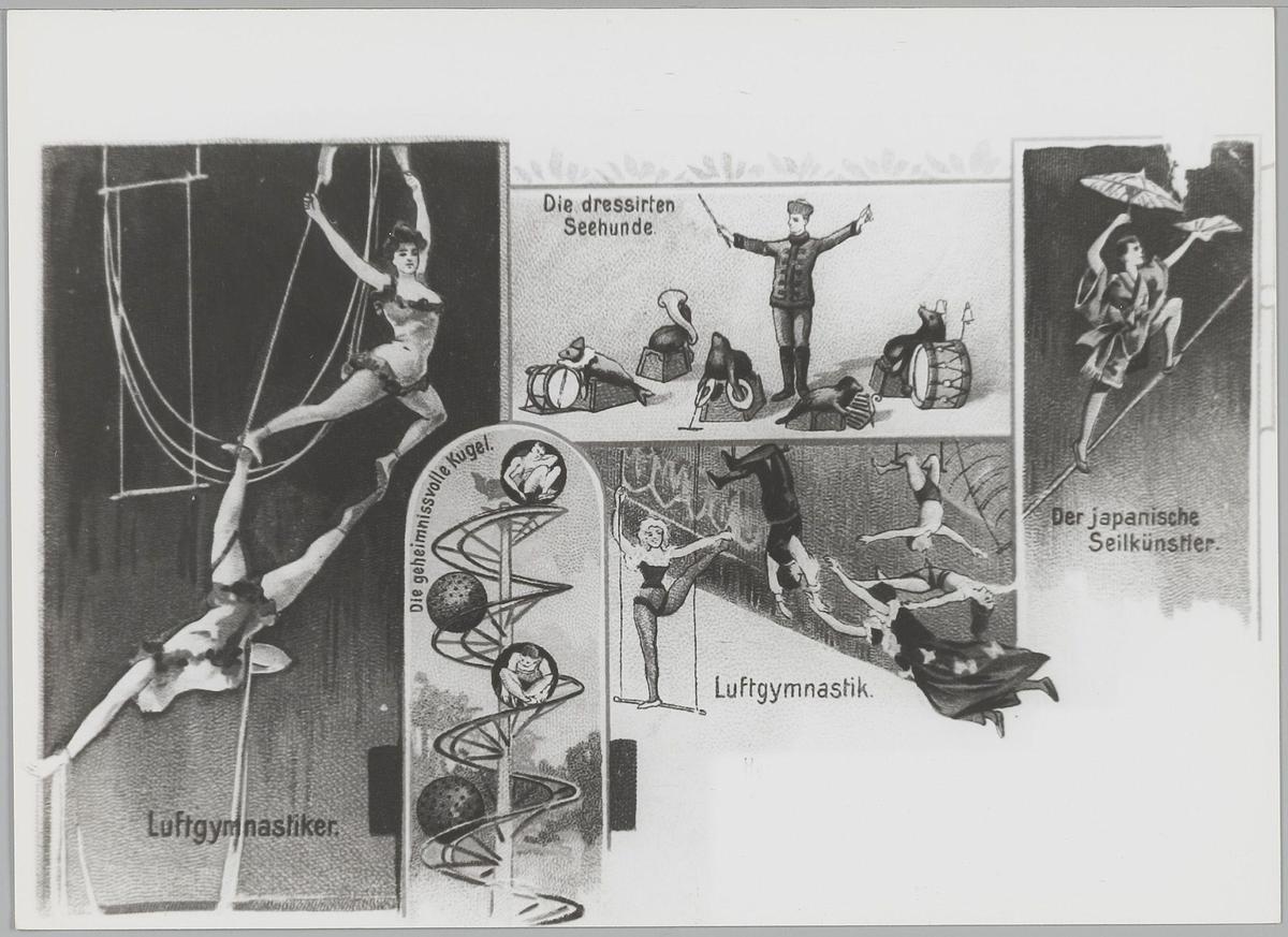 Luftgymnastiker. Die dressierte Seehunden. Der Japan...