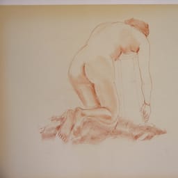 Voorover op krukje leunend vrouwelijk naakt