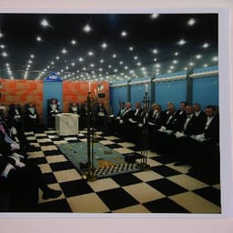 Vrijmetselaren in het gelid tijdens rituaal in loge ...