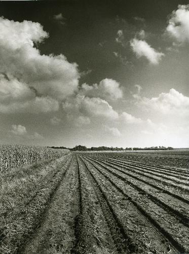 Foto in zwart-wit van een veld mais bij Tronde door ...