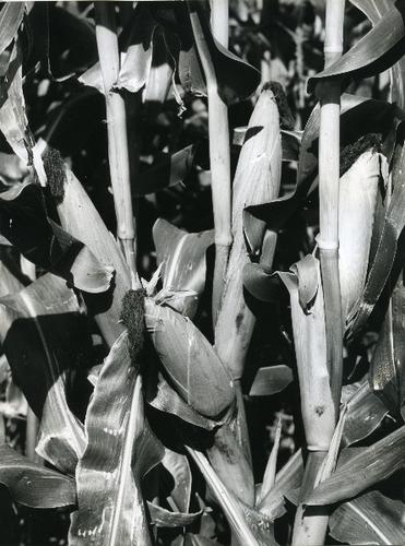 Foto in zwart-wit van mais door J. D. de Jong, 1973