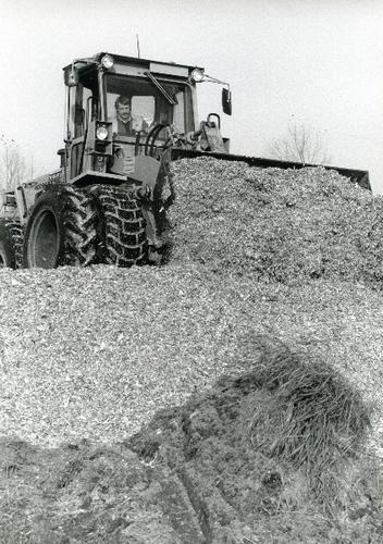 Foto in zwart-wit van een Zeus sleufsilo, 1979