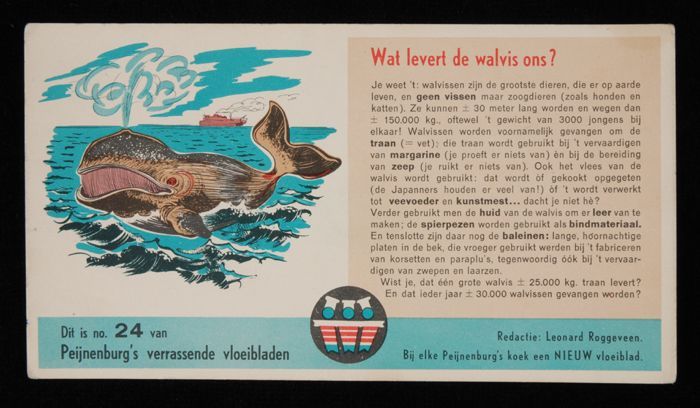 Vloeiblad van "Peijnenburg" over de walvis