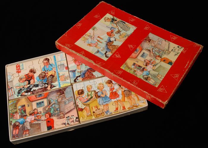Rode doos met vier puzzels met kinderen