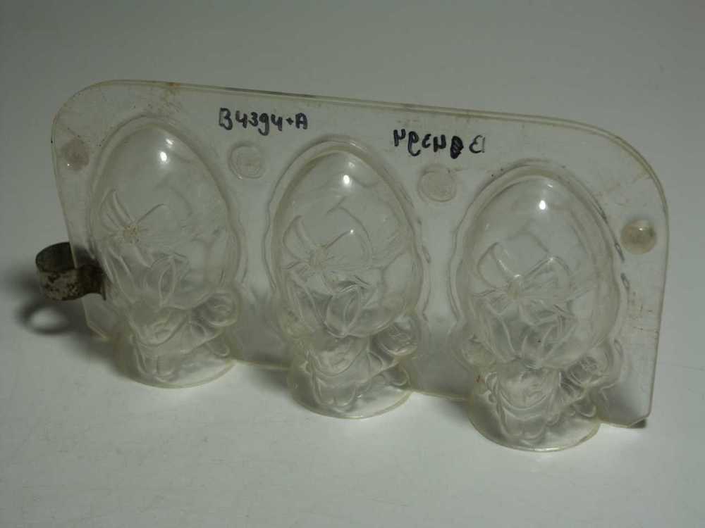 Chocoladevorm van plastic model 3x paashaas met paasei