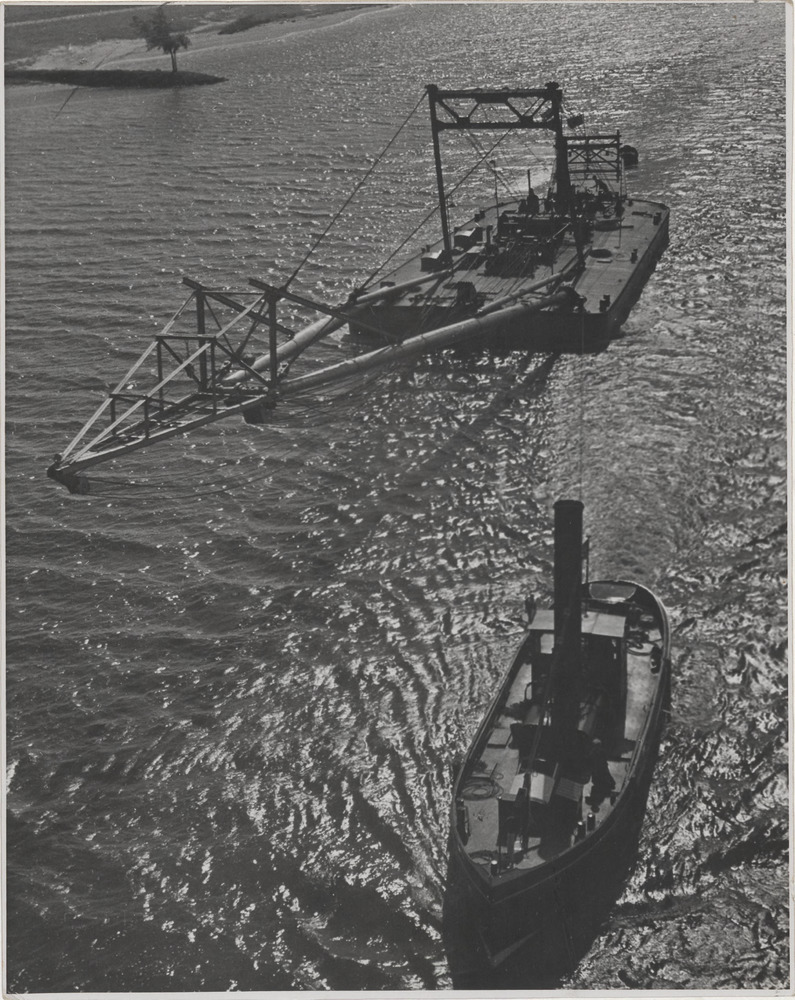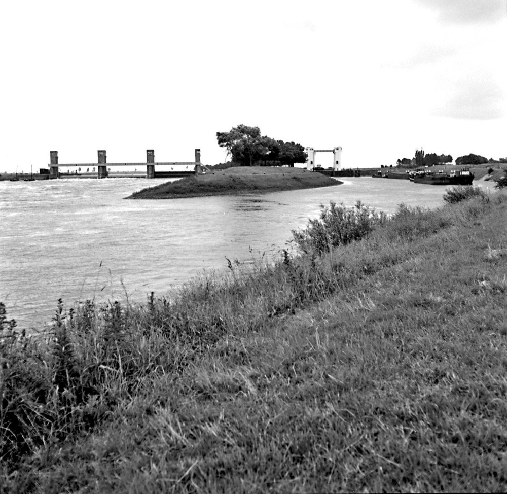 Fototentoonstelling. Sleepboot met bok op de Lek. Wa...