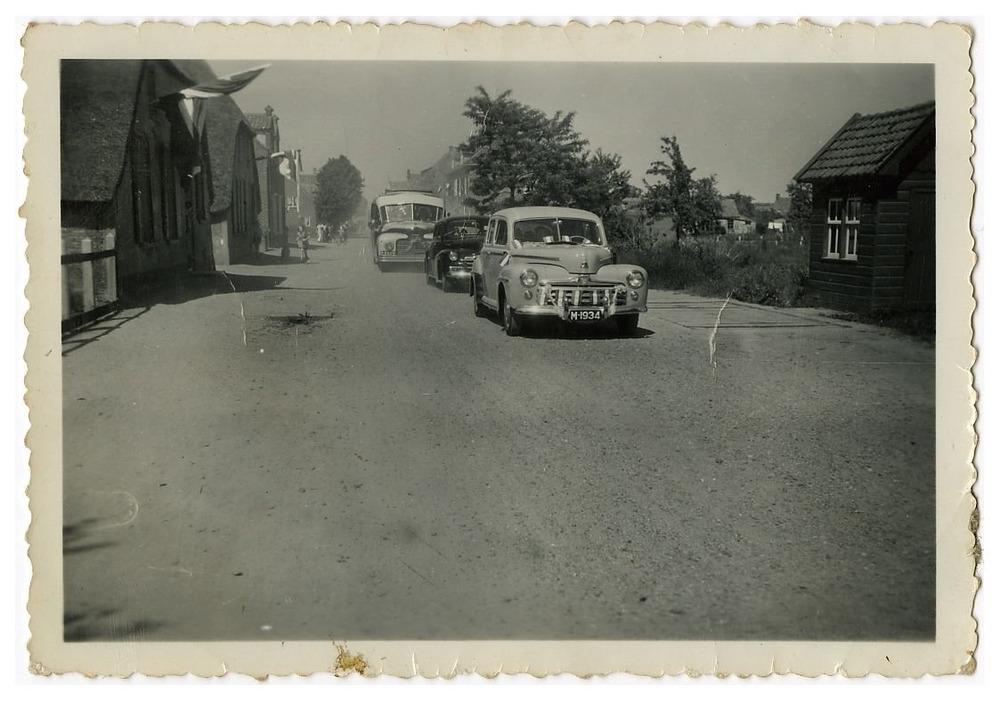 Drie auto's rijdend door de Voorstraat ter hoogte va...