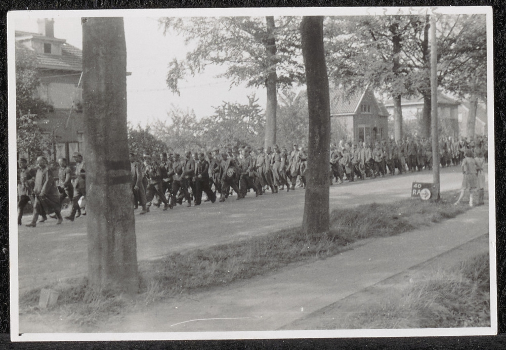 Duitse krijgsgevangenen op de Mooksebaan, op voorgro...