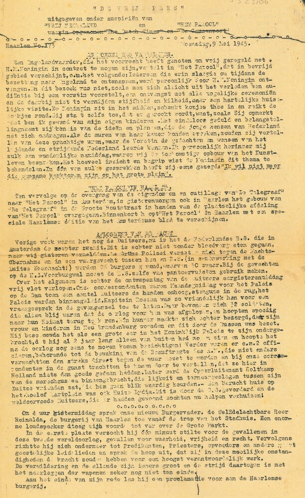 Vrij Nederland, Je Maintiendrai, kerstnummer, 1940