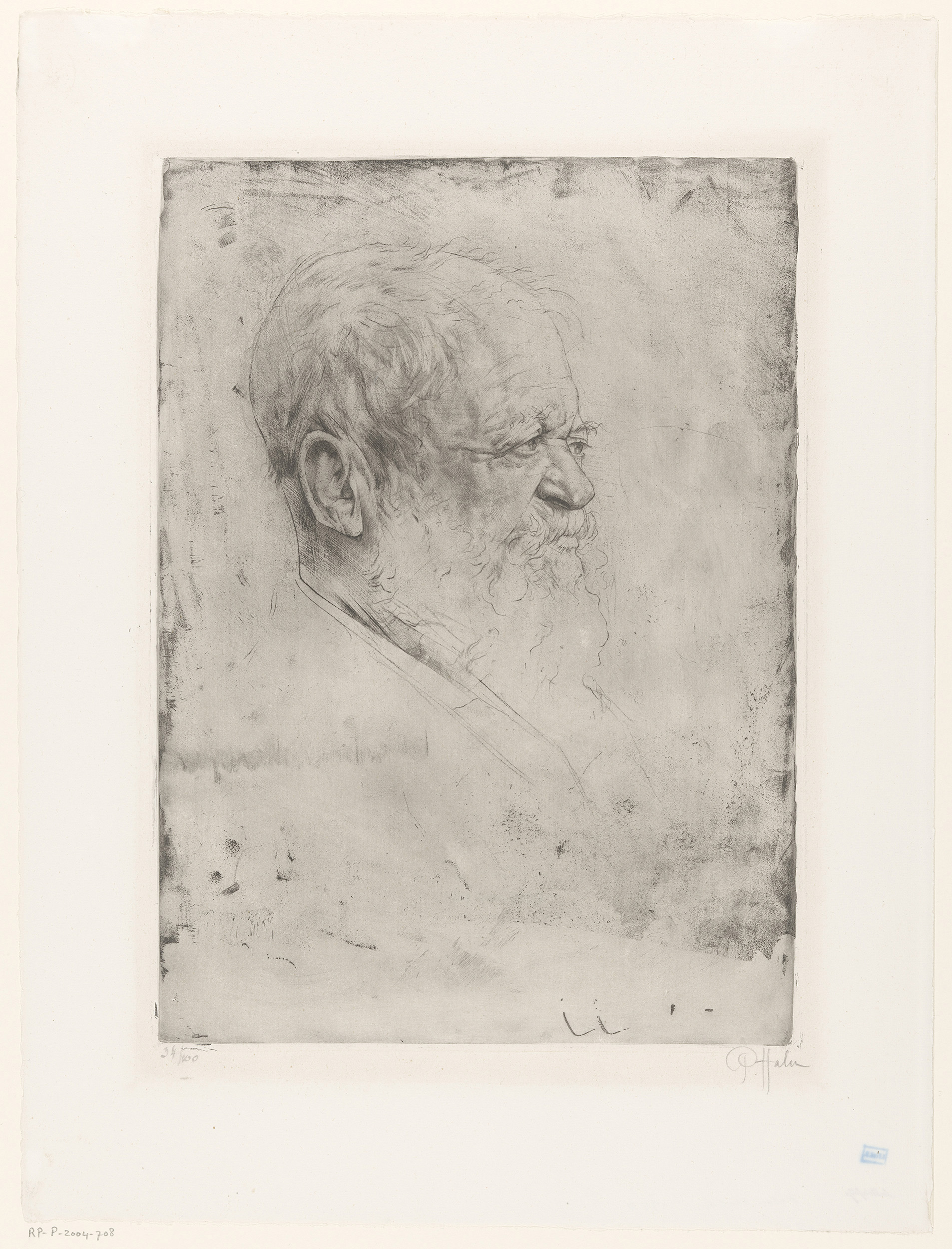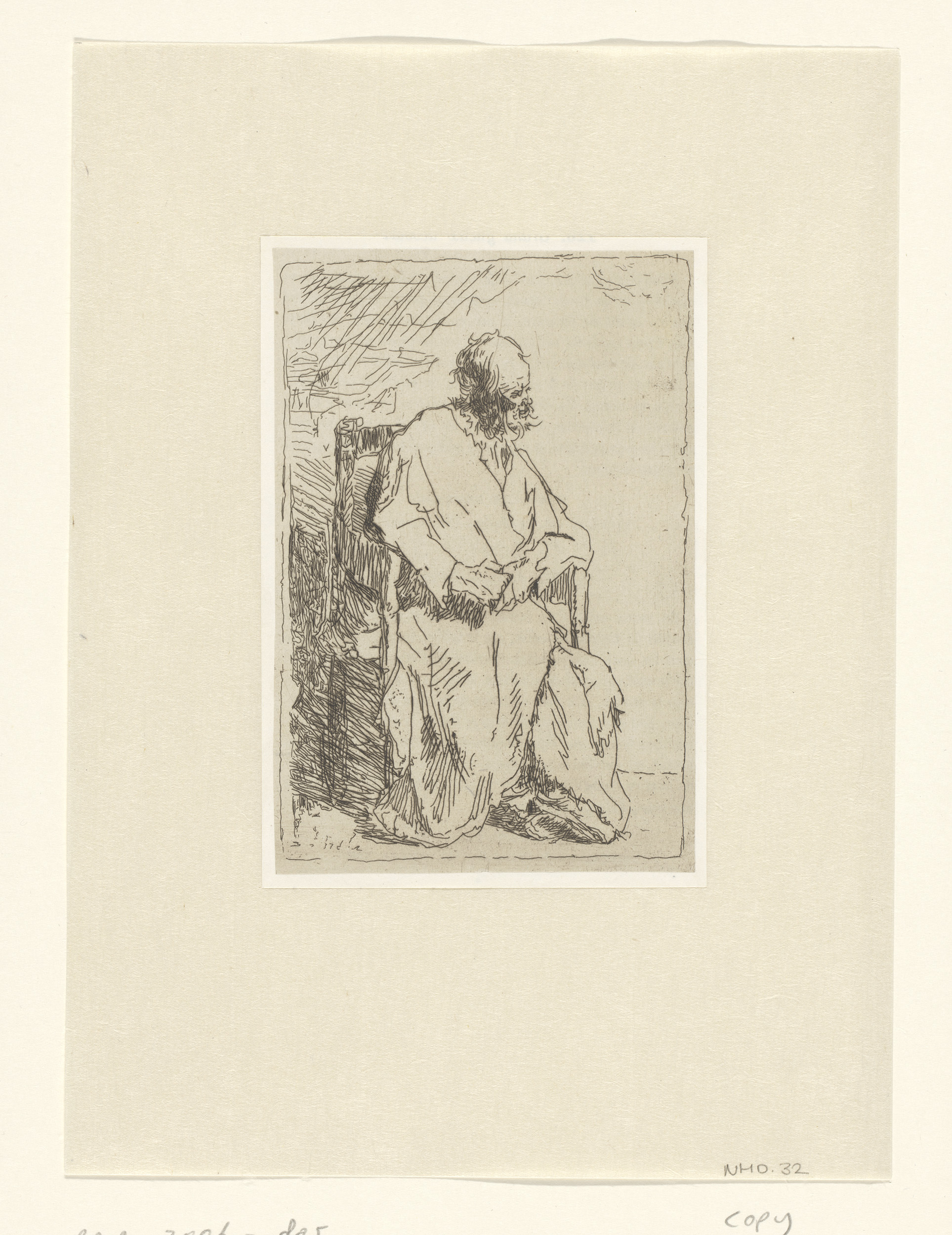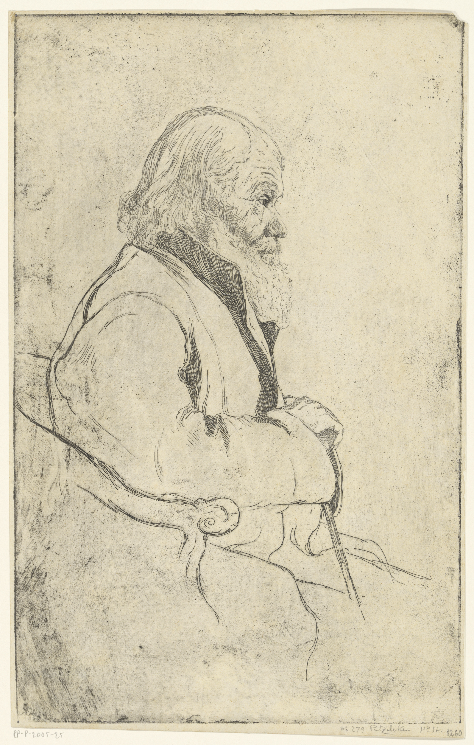 Zittende oude man, en profil