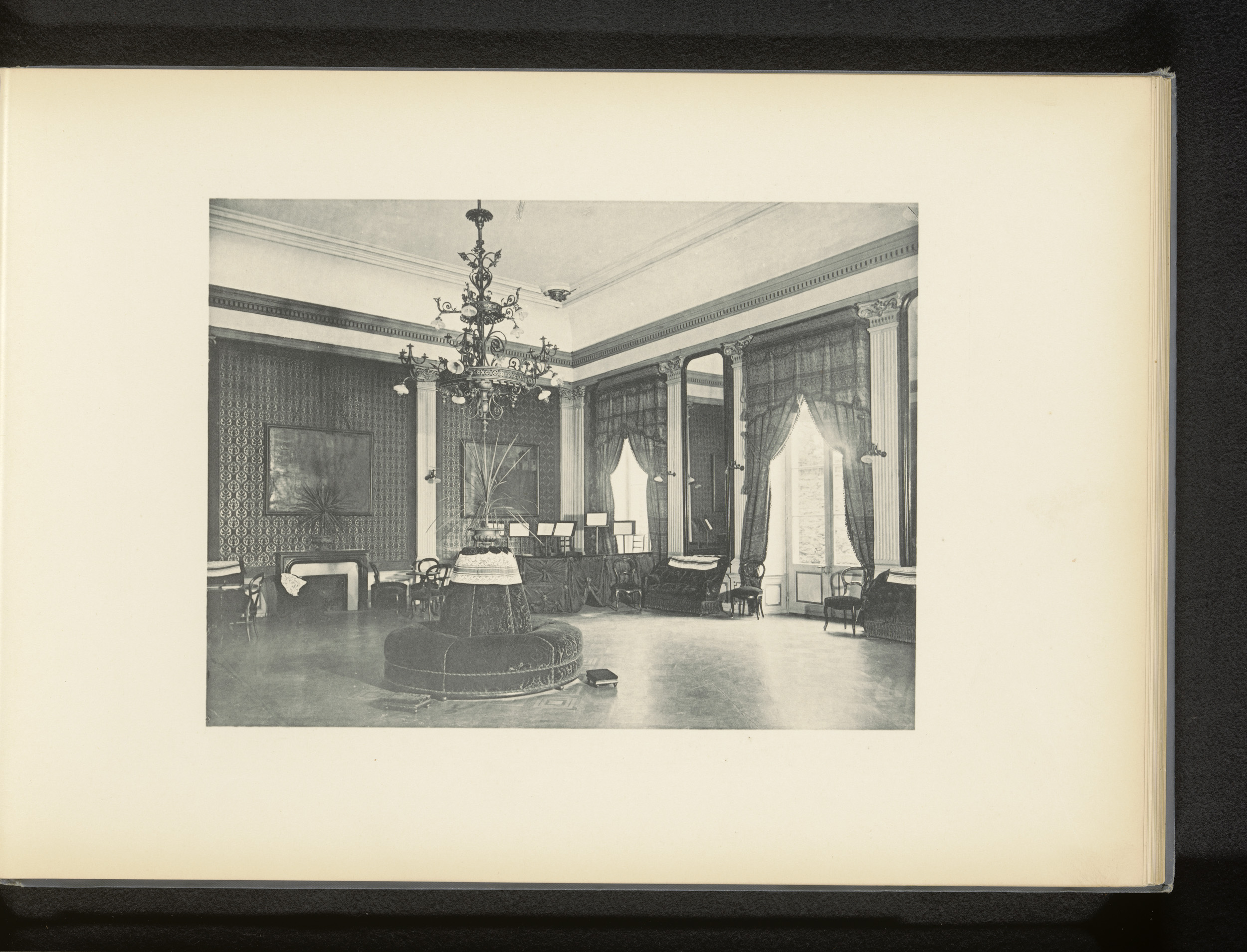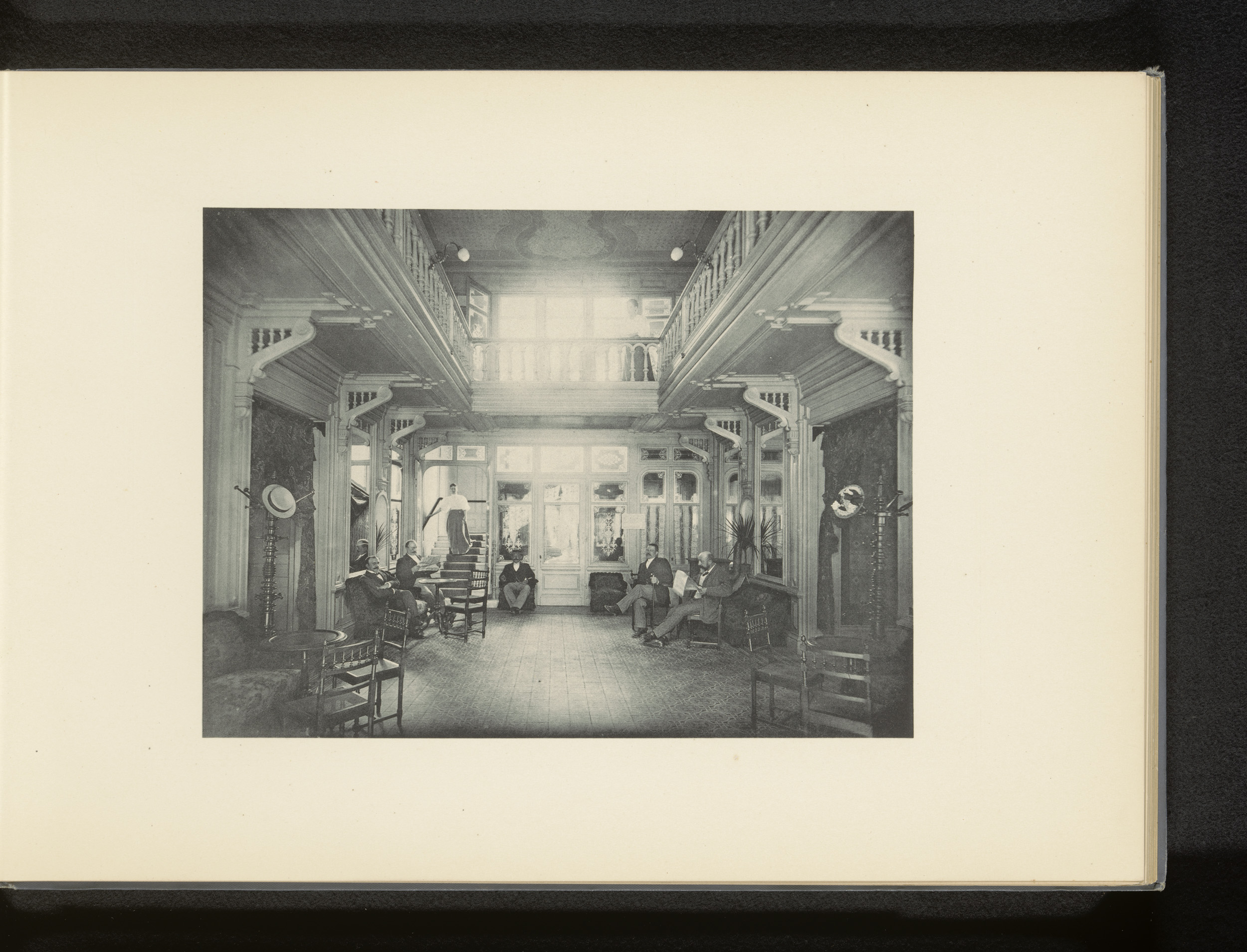 Gezicht op de salon van het hoofdgebouw van de baden...