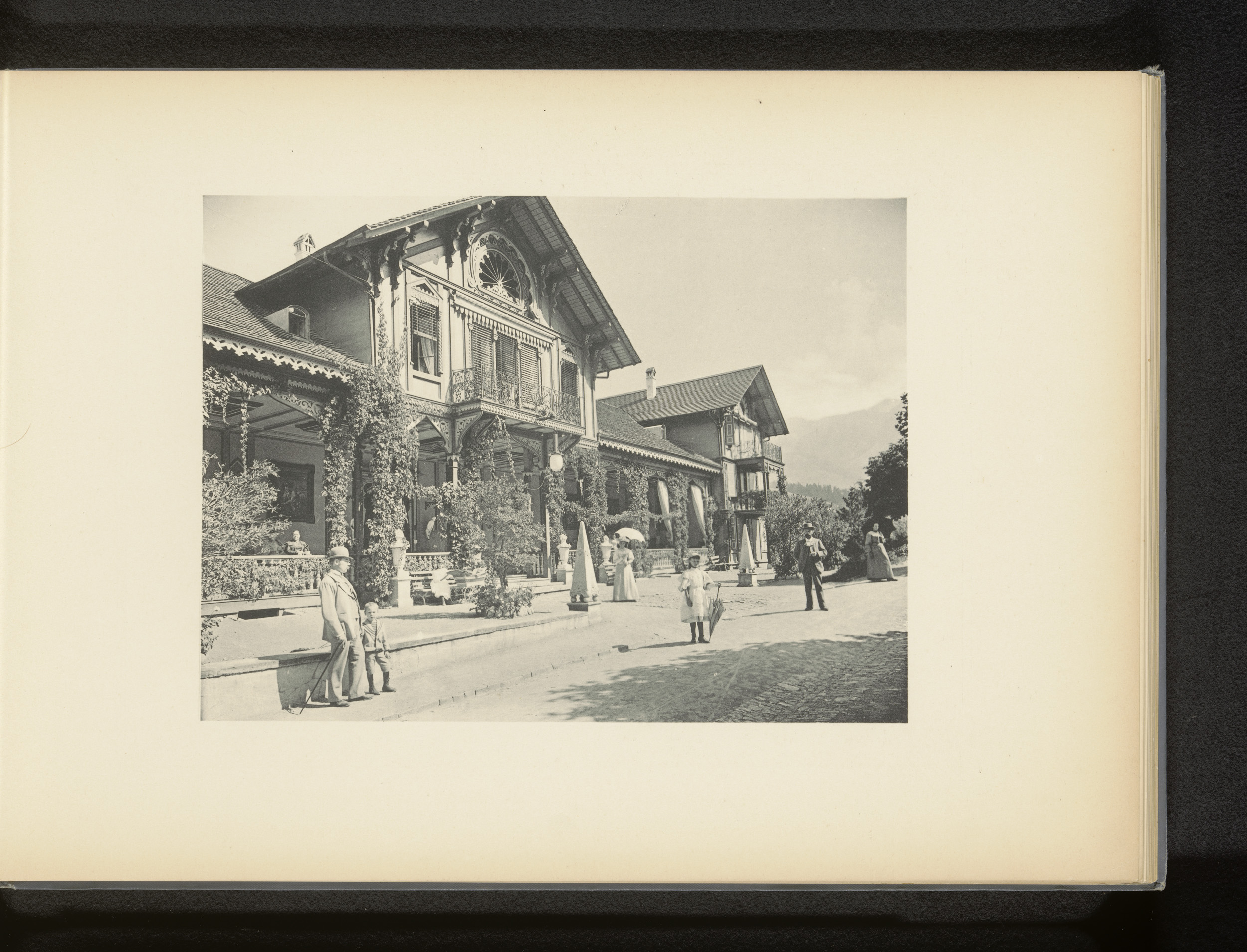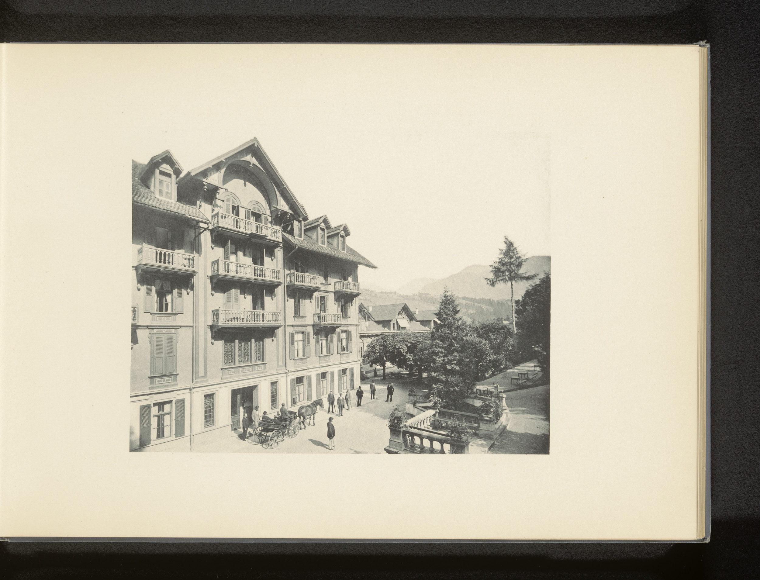 Gezicht op het hoofdgebouw van de baden van Heustric...