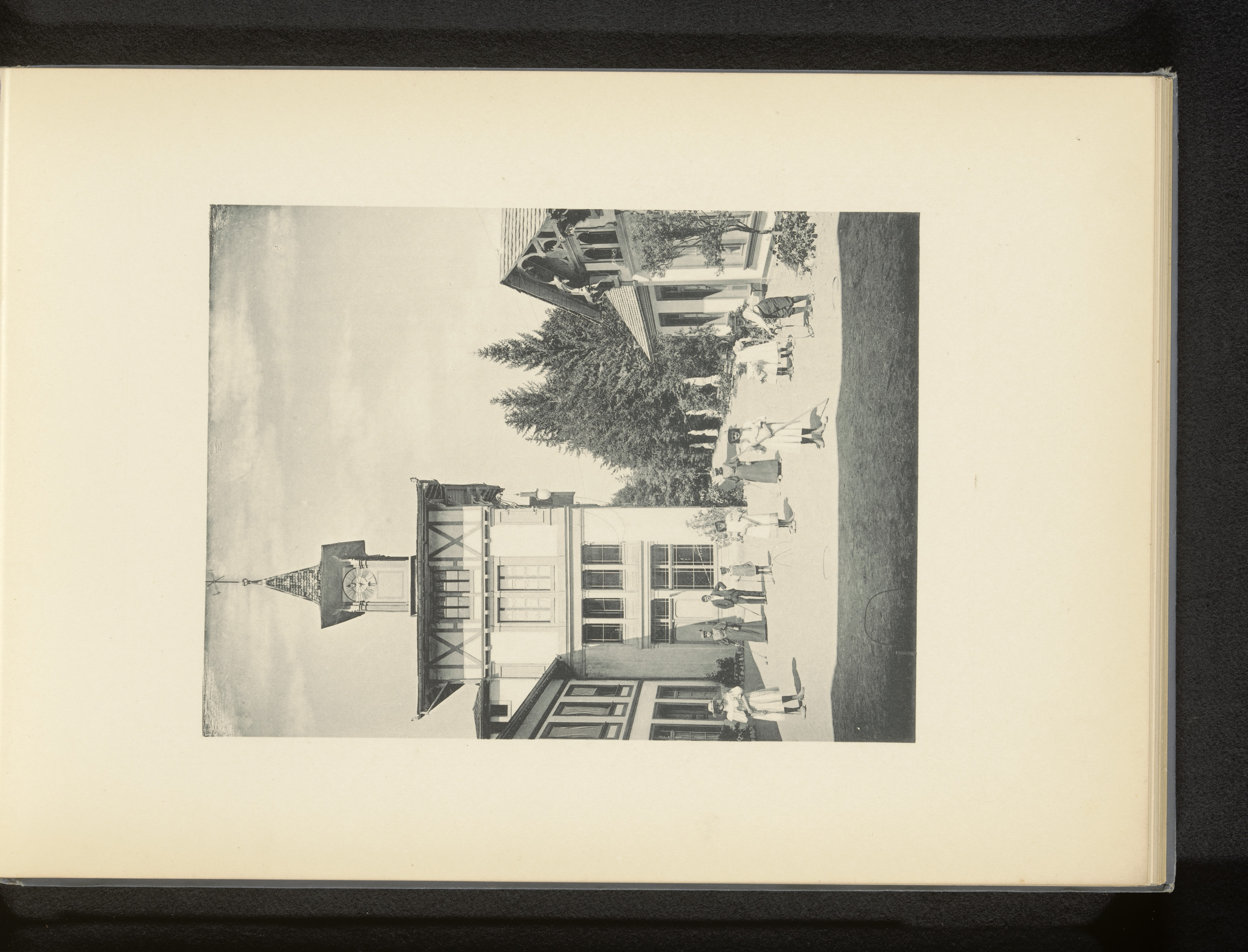 Gezicht op de promenade voor het hoofdgebouw van de ...