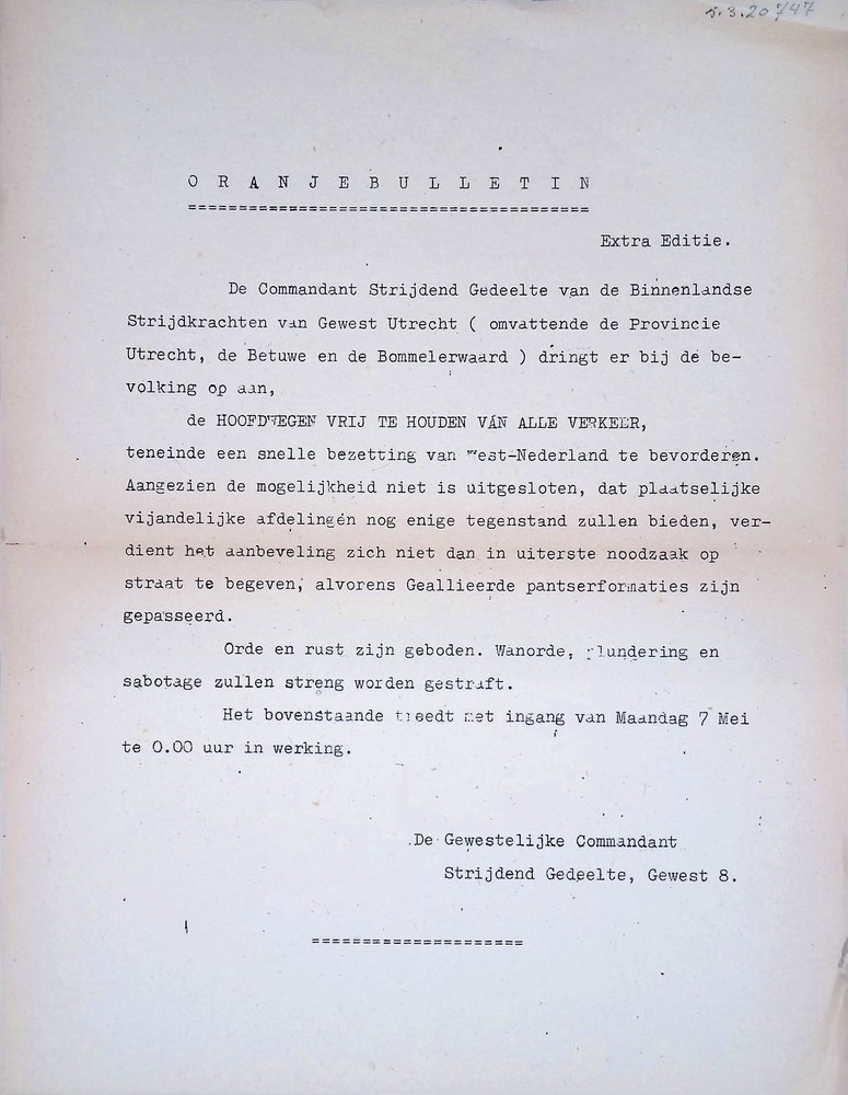 Oranjebulletin, extra editie