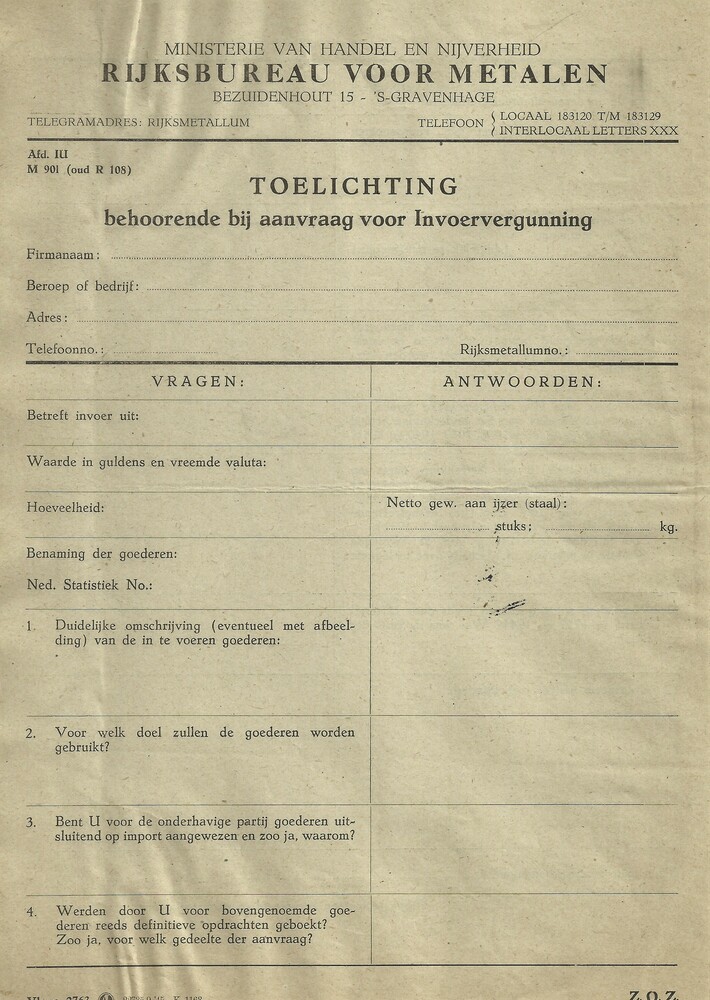 Toelichting behoorende bij aanvraag voor Invoervergu...