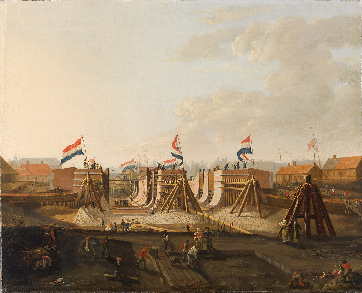 De bouw van de Oosterdokssluis, gezien uit het noorden