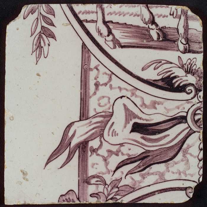 Rechtertegel van pilaster waarop deel van paarse voluut