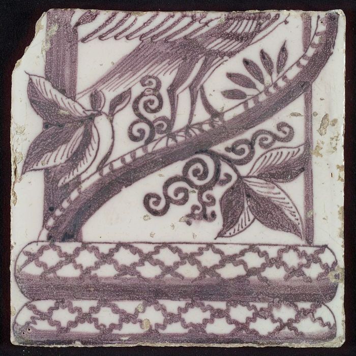 Paarse tegel van pilaster "Landzigt": onderdeel van ...