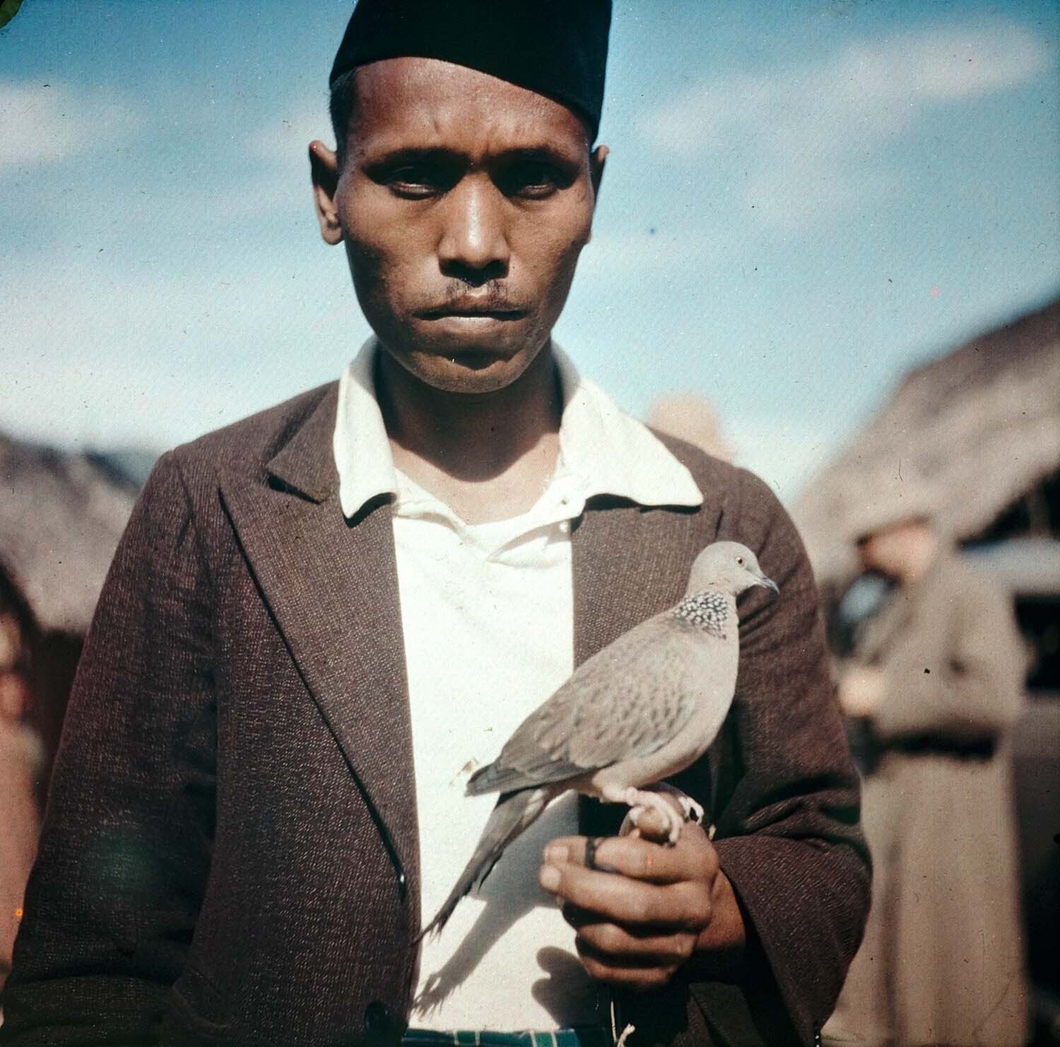 Portret van een man met een tortelduif