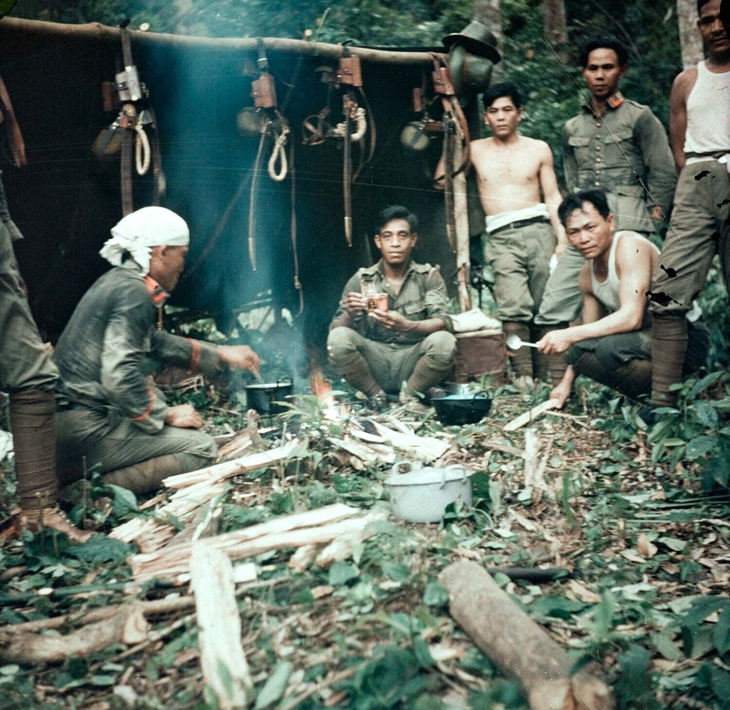 Cooking 'Marechaussee' soldiers in a bivouac
