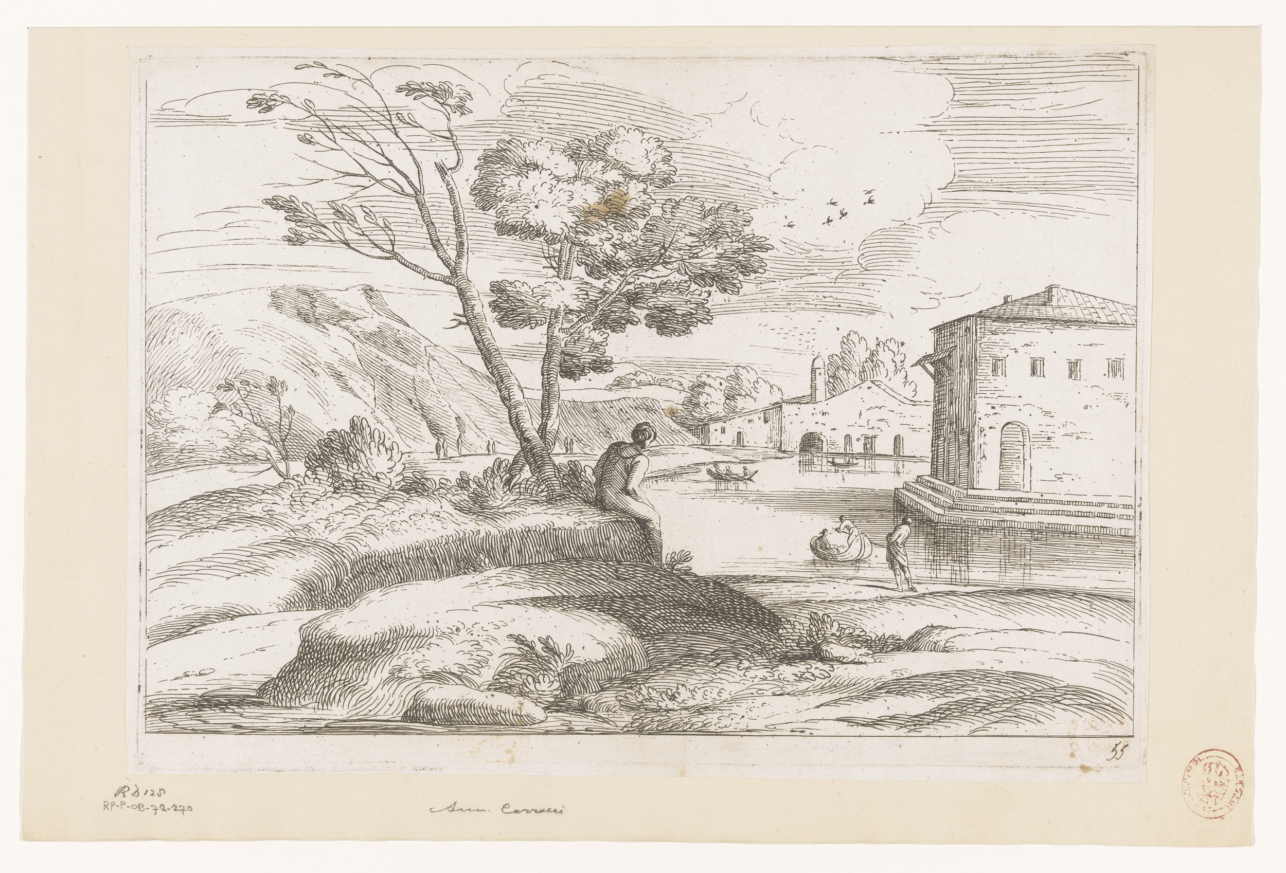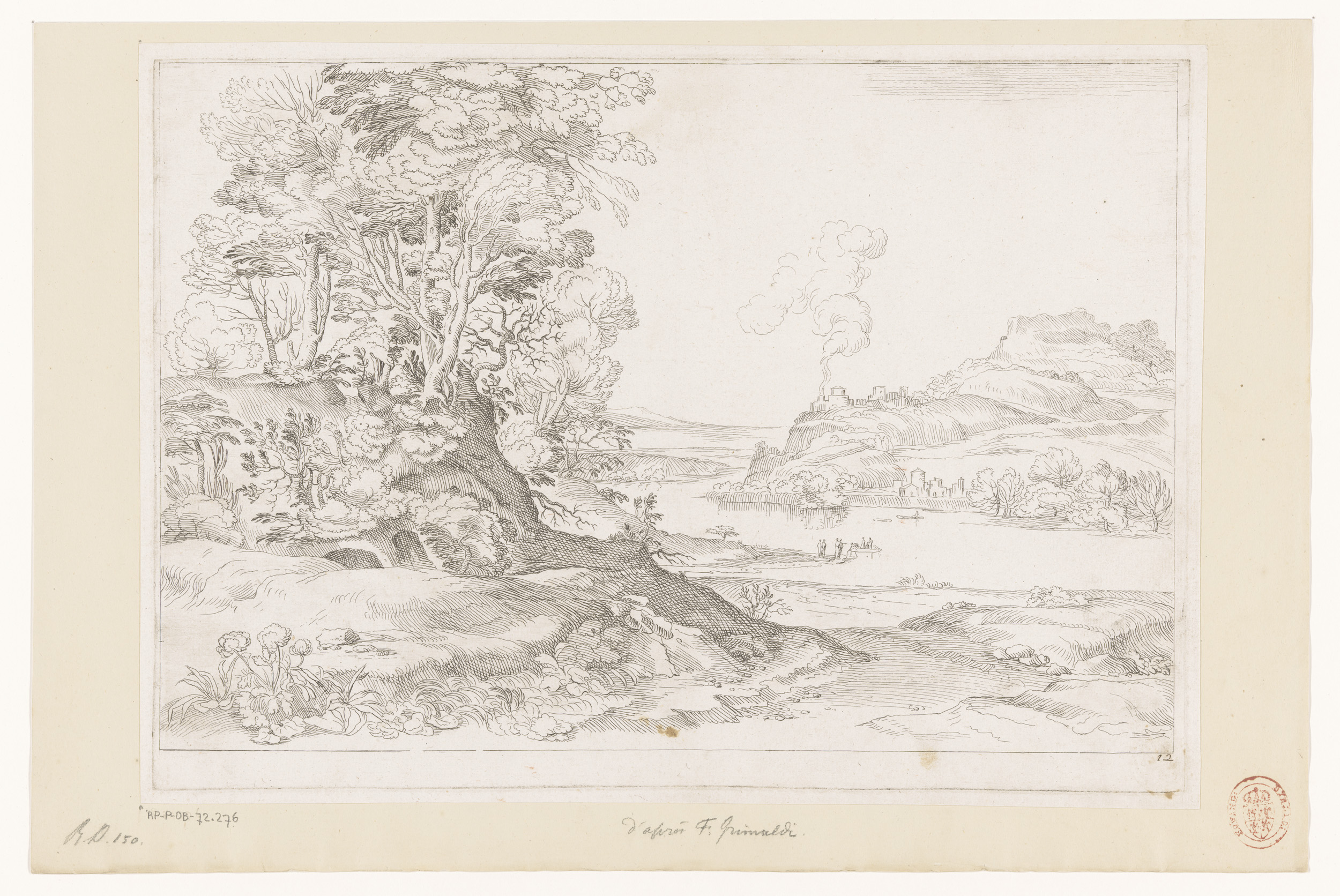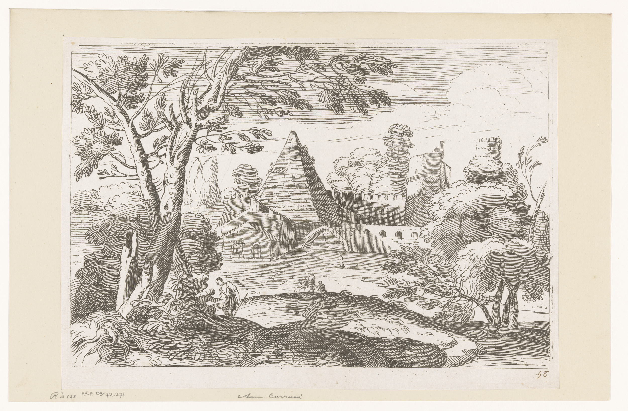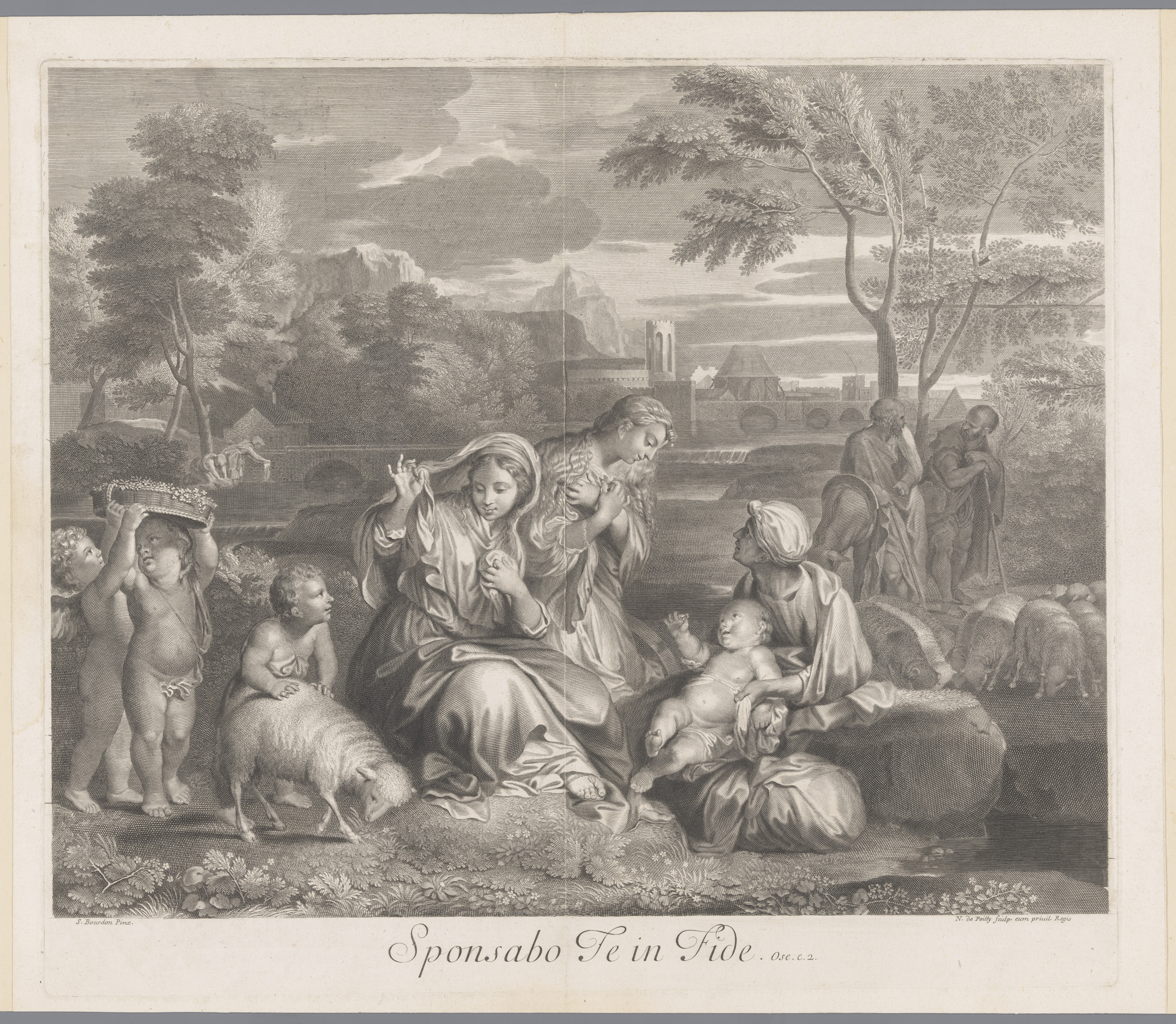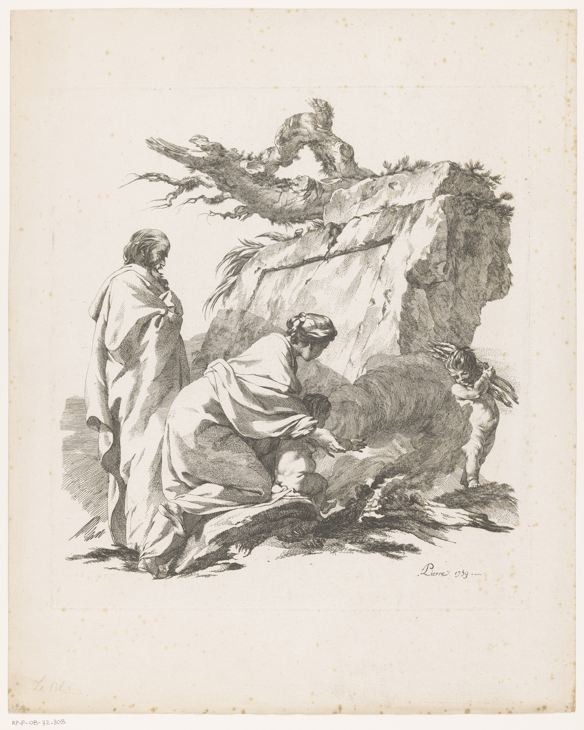 Maria bij ruïne met Christuskind dat de knielende Jo...