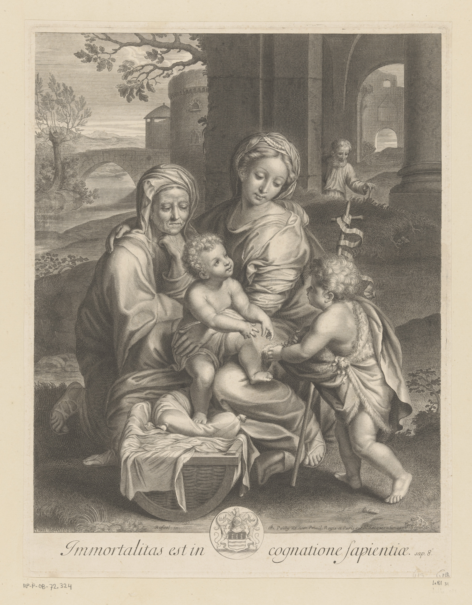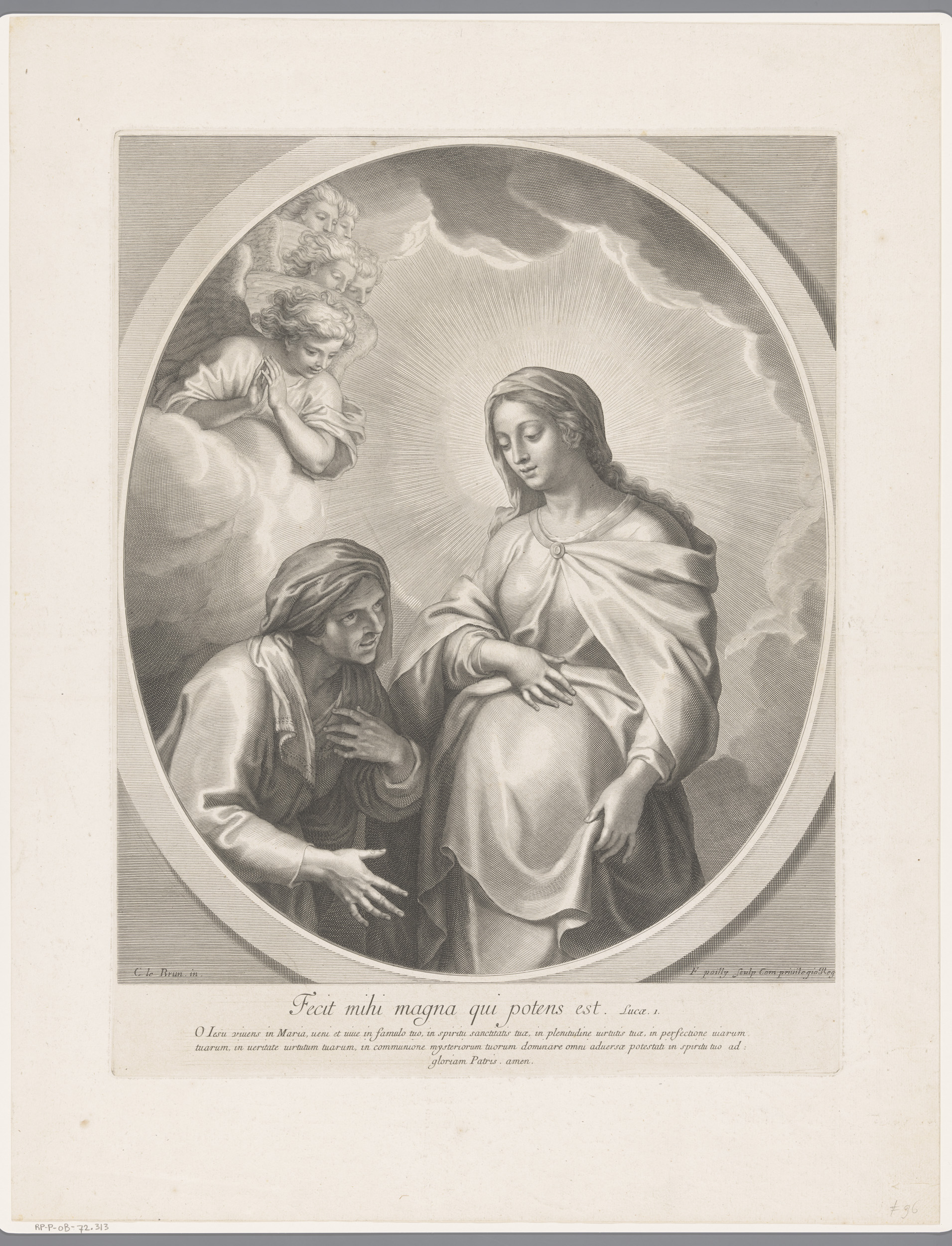 Maria met kind staand in kribbe, en Elisabet met Joh...