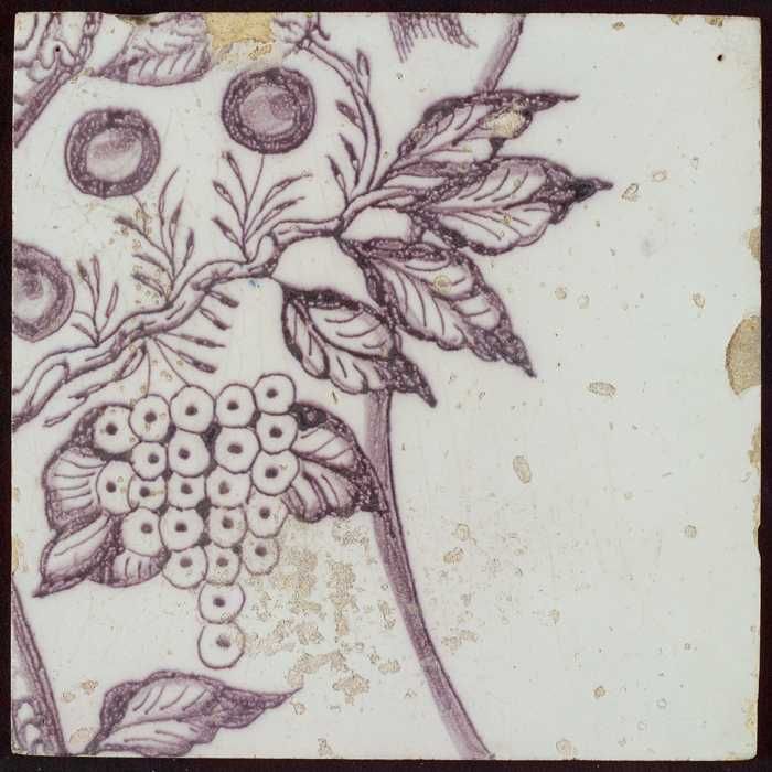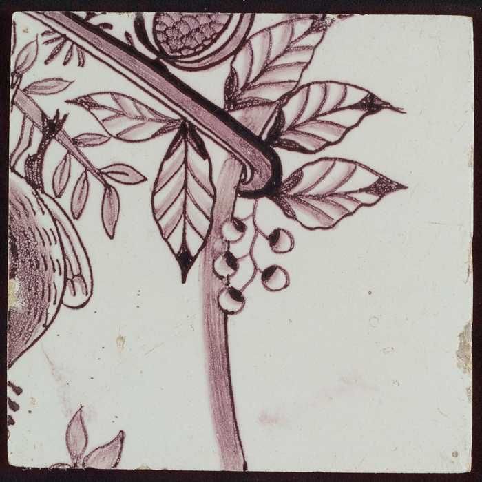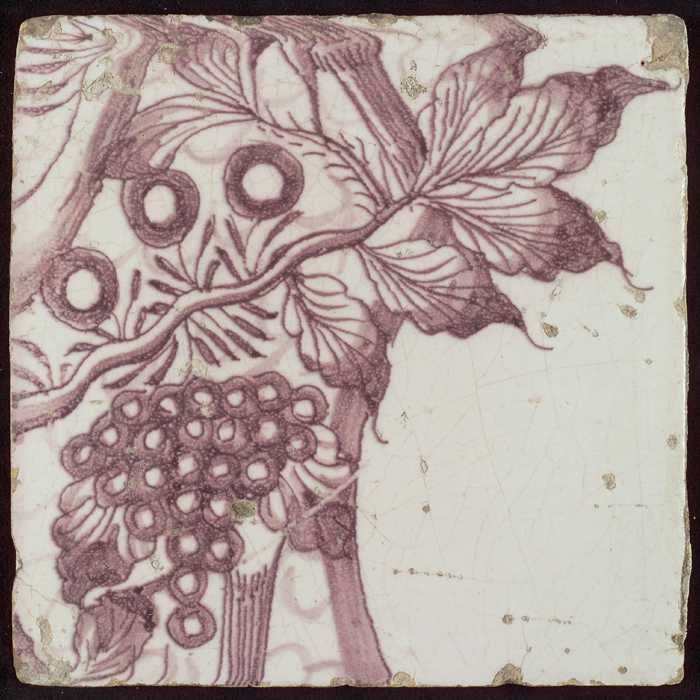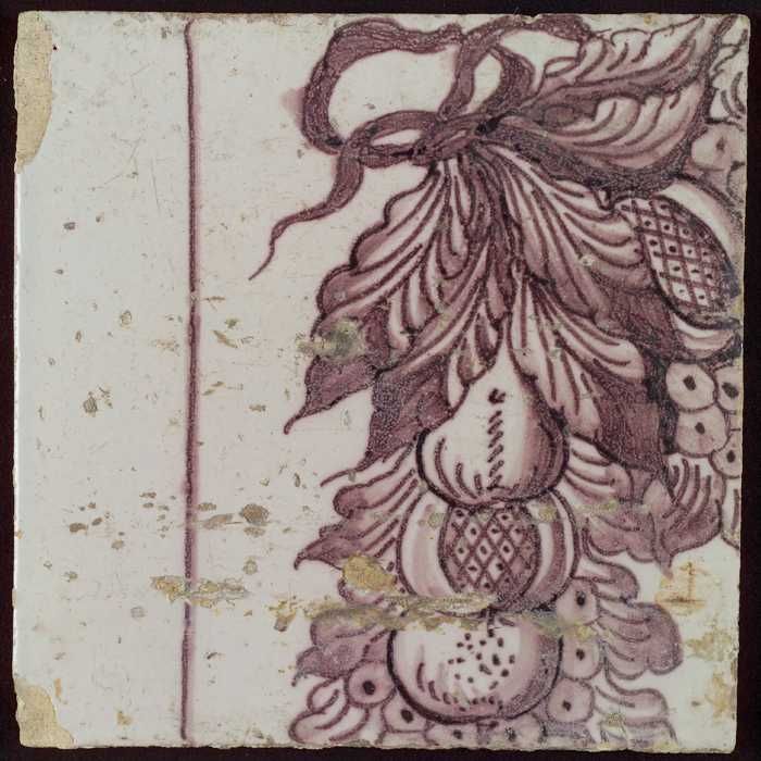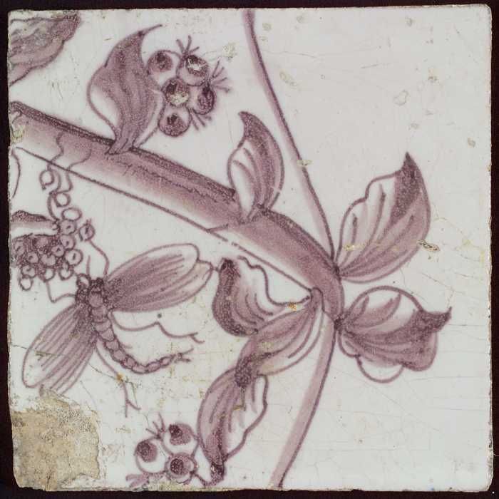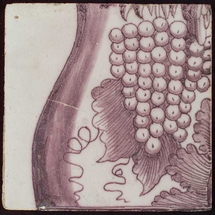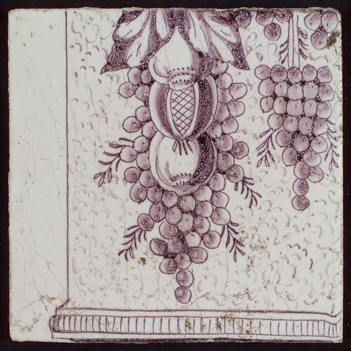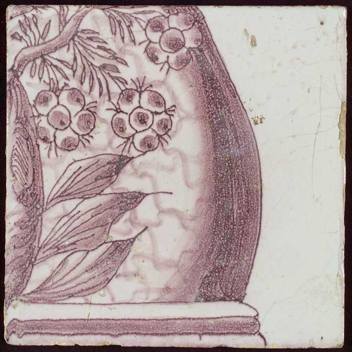 Tegel van pilaster met paarse rank van bladeren, bes...