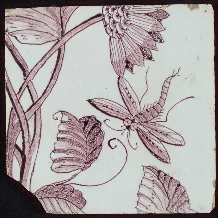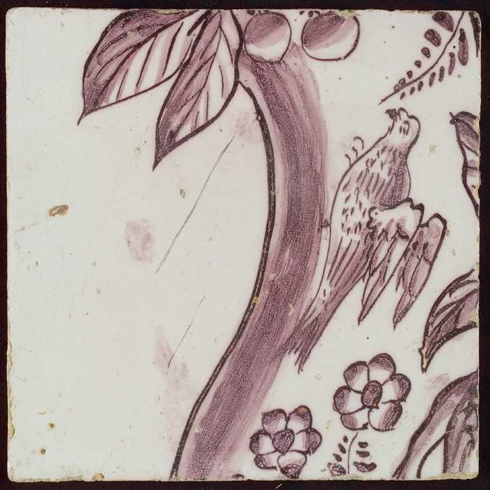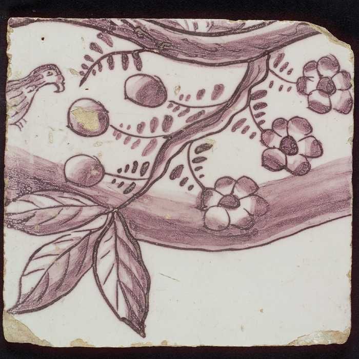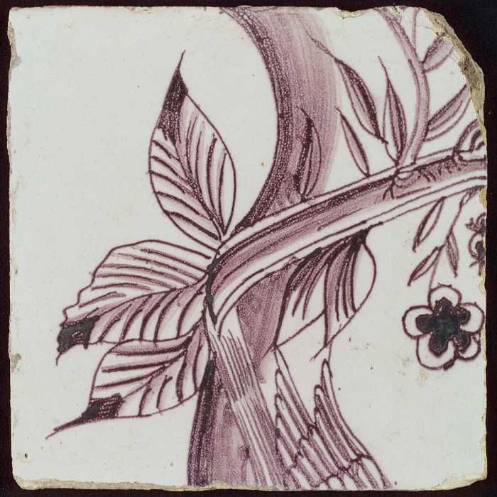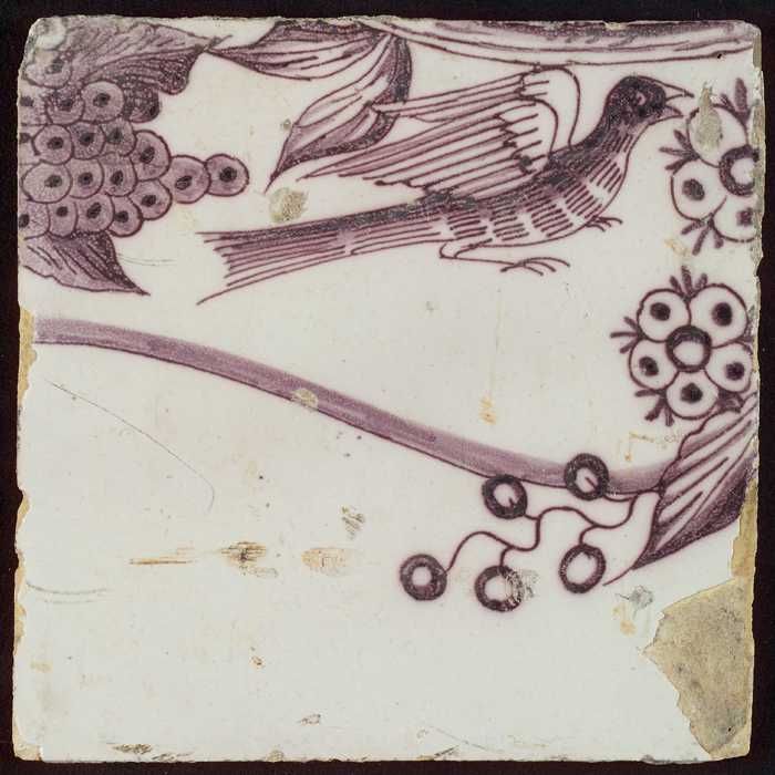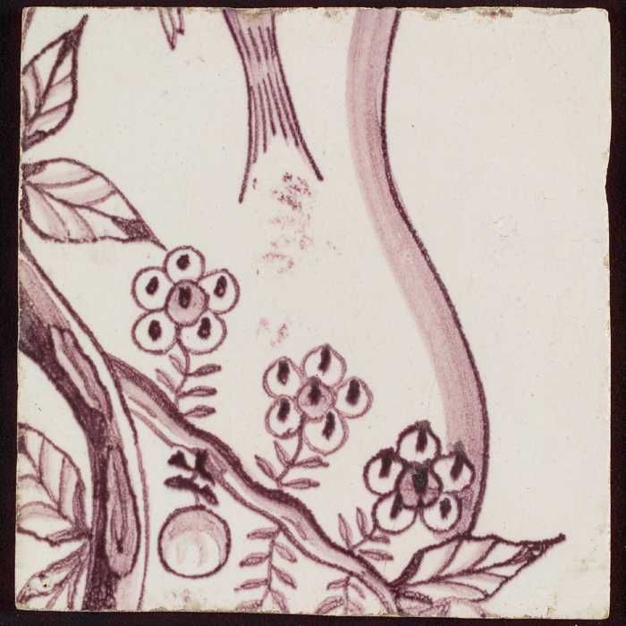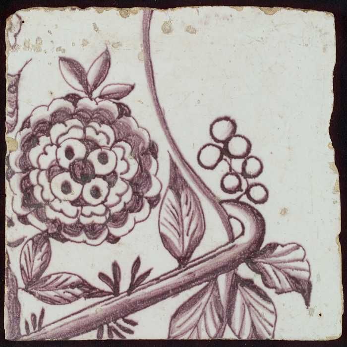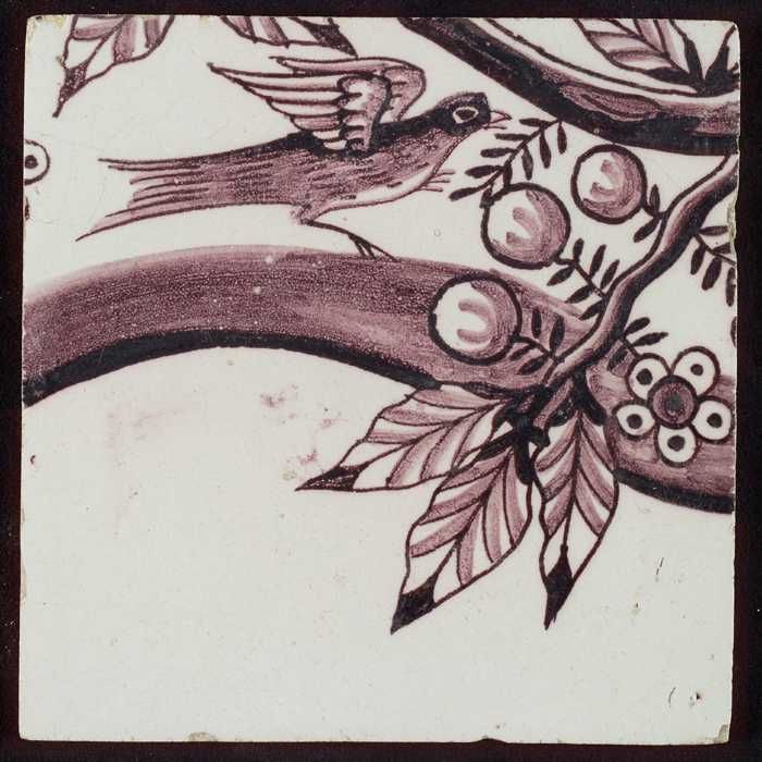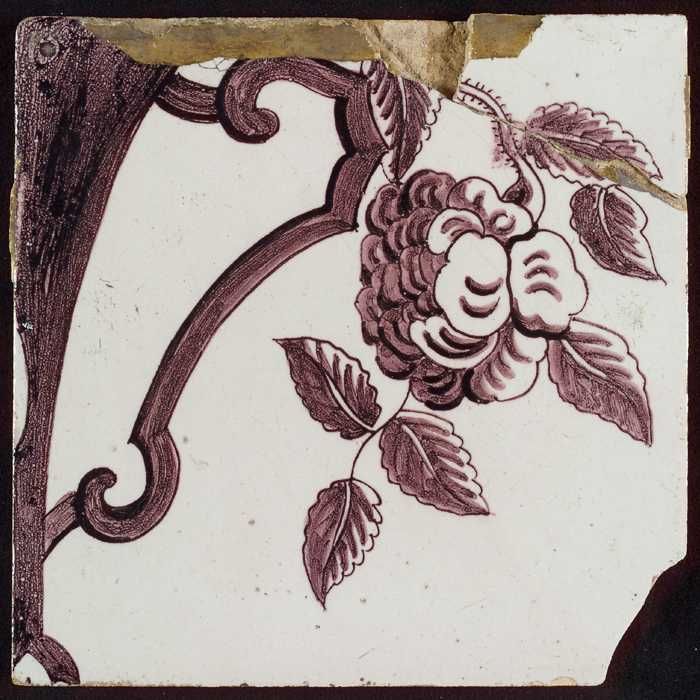 Tegel van pilaster met paarse rank van bladeren, bes...