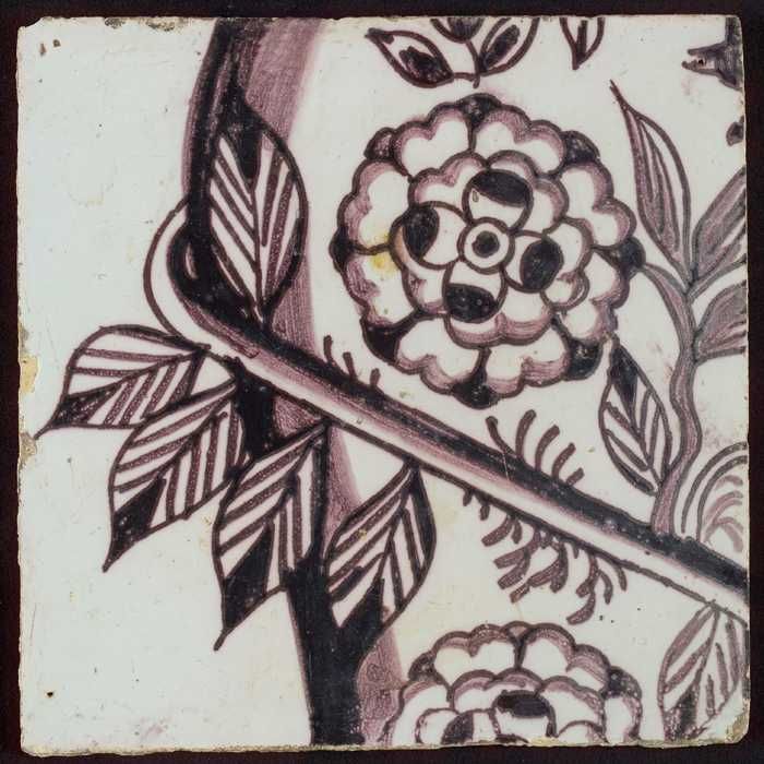 Twee tegels van pilaster met paarse bloemen- en blad...