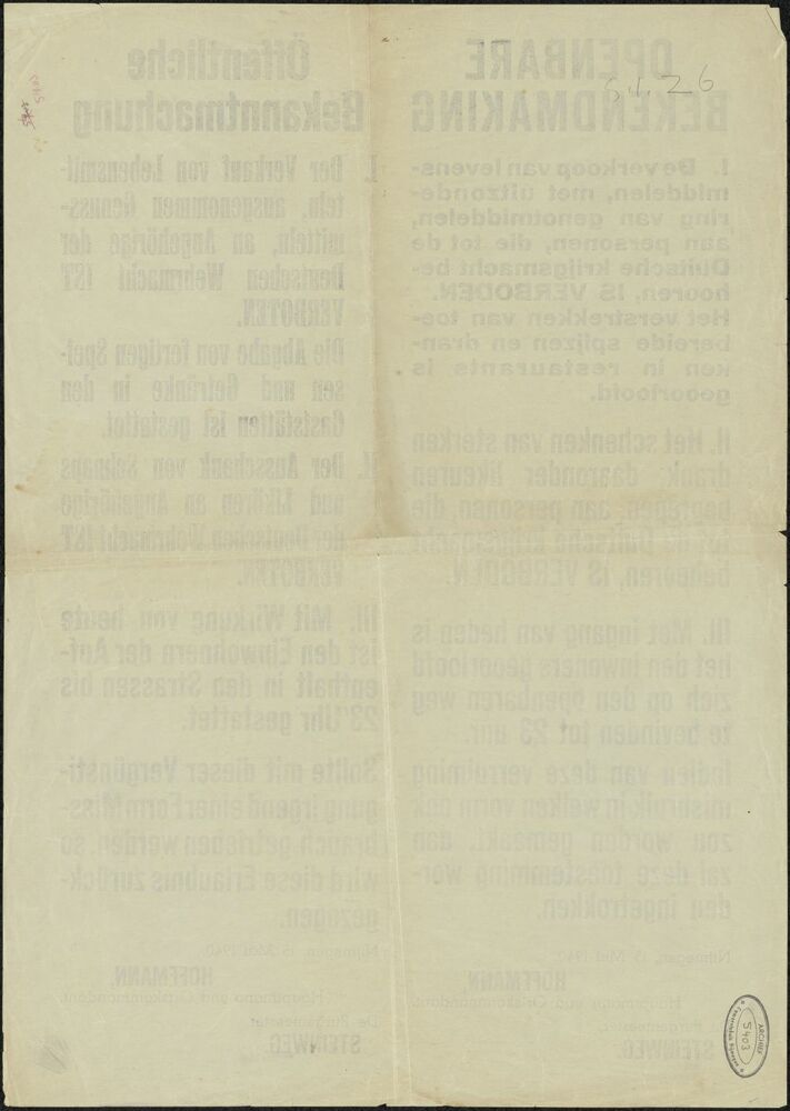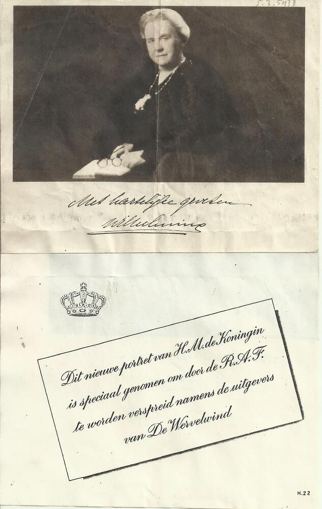 Pamflet met foto Koningin Wilhelmina en tekst: "Met ...