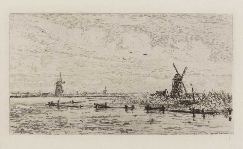 Landschap met water en molens