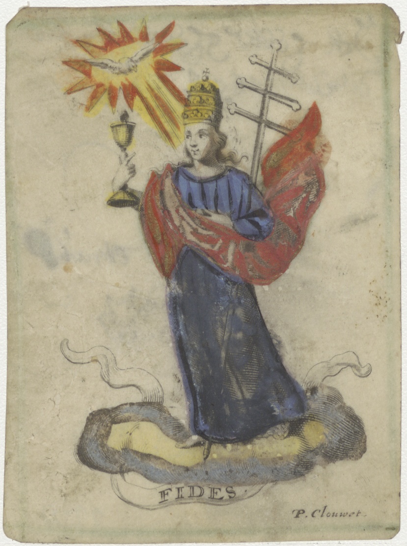 Fides, personificatie van Geloof, ingekleurd, kz. 16...