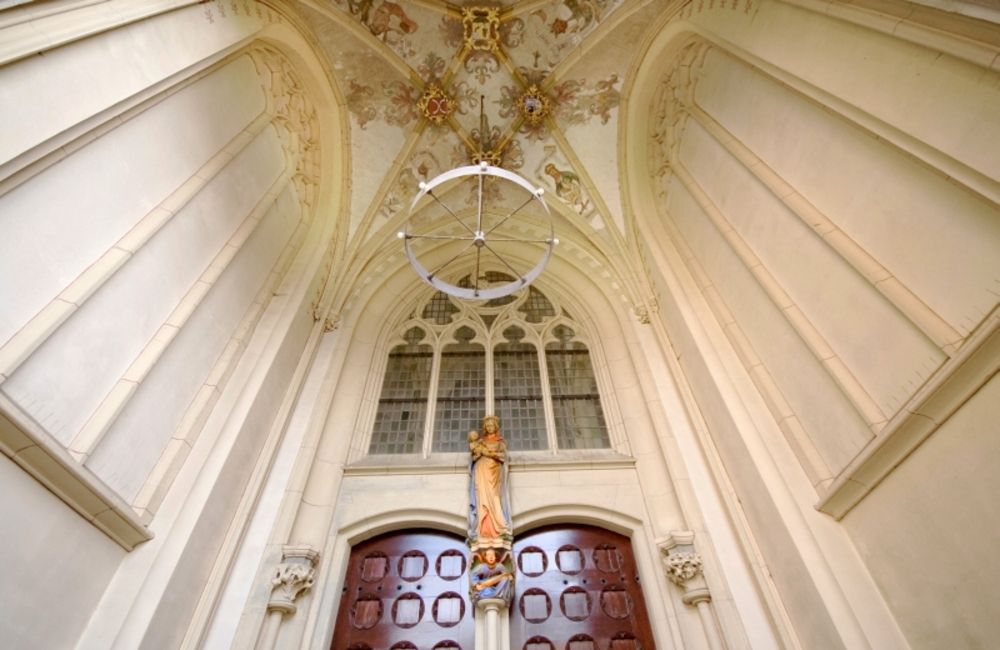 Mariabeeld en portaal van de Sint Walburgiskerk