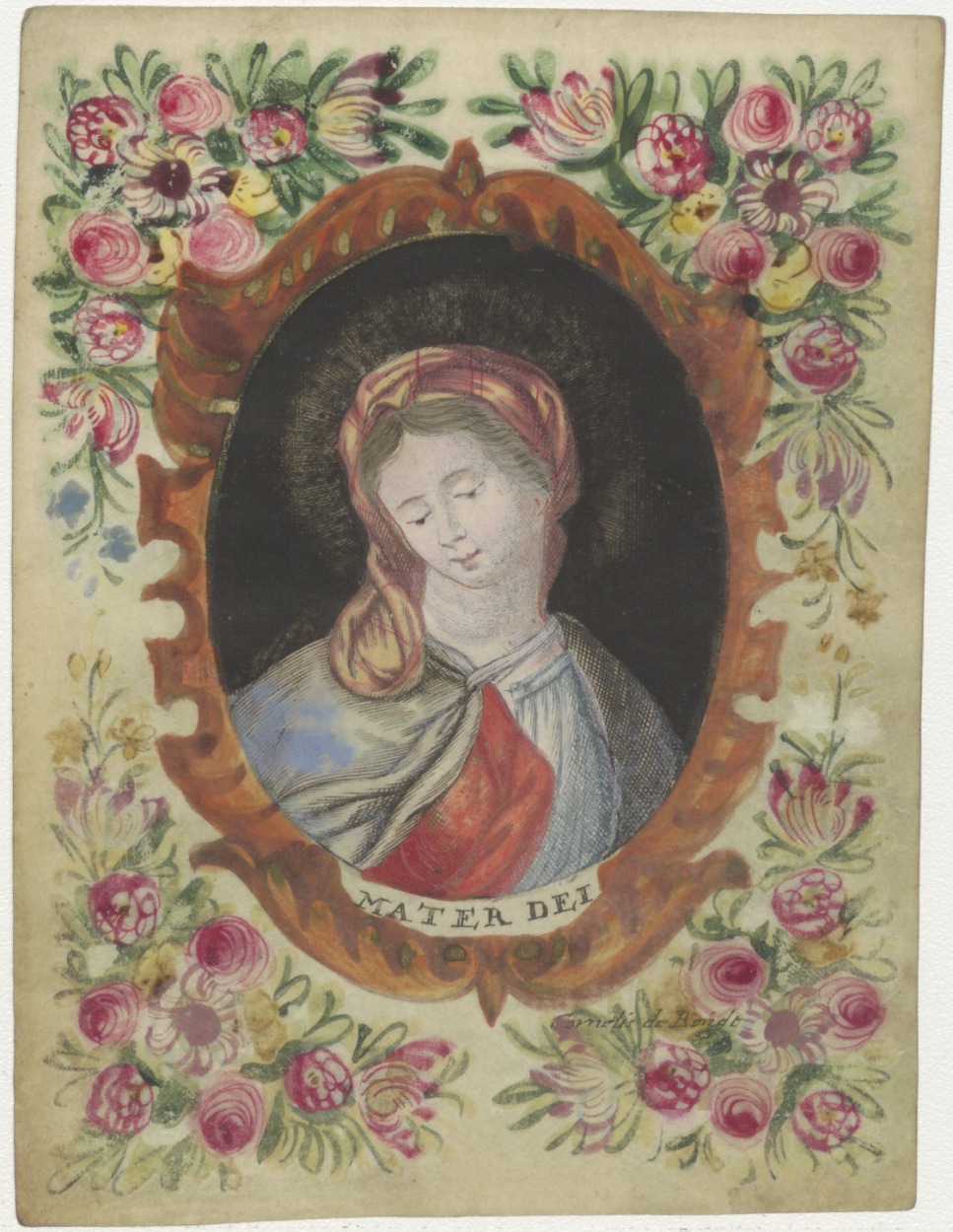 Maria, versierd met kant en sterretjes, ingekleurd, ...