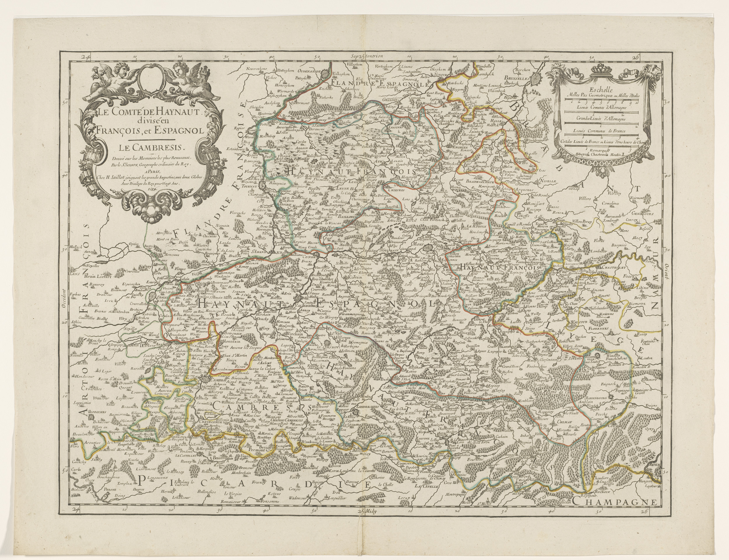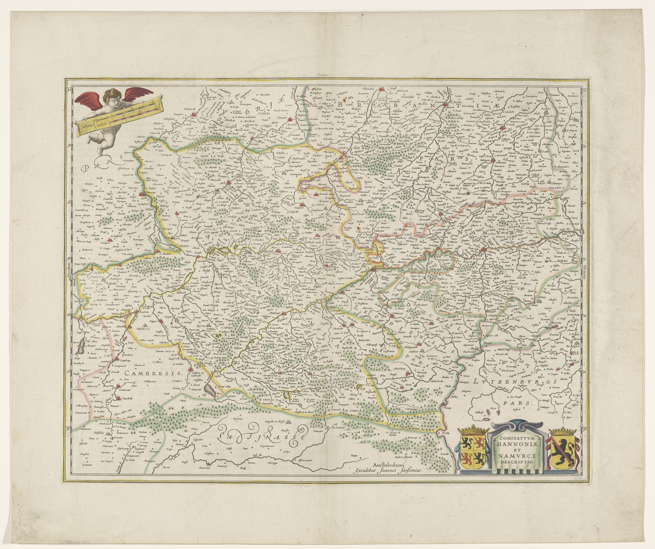 Kaart van de graafschappen Henegouwen en Namen