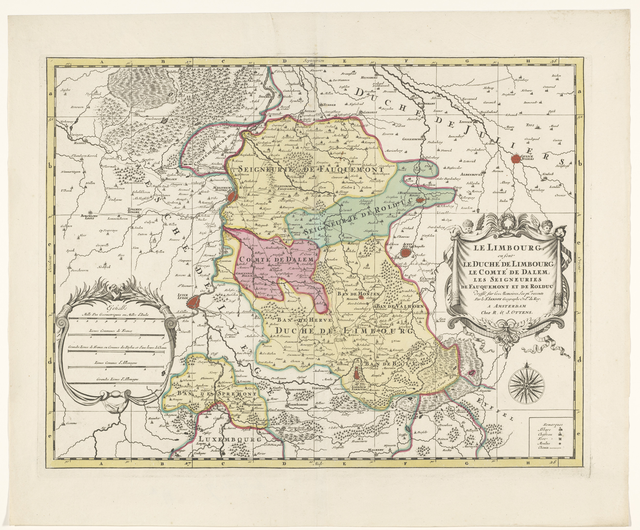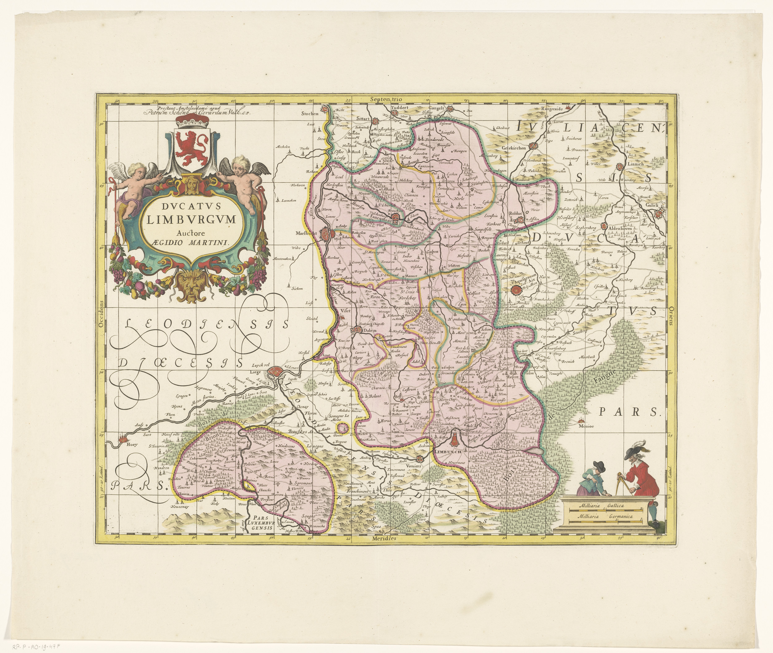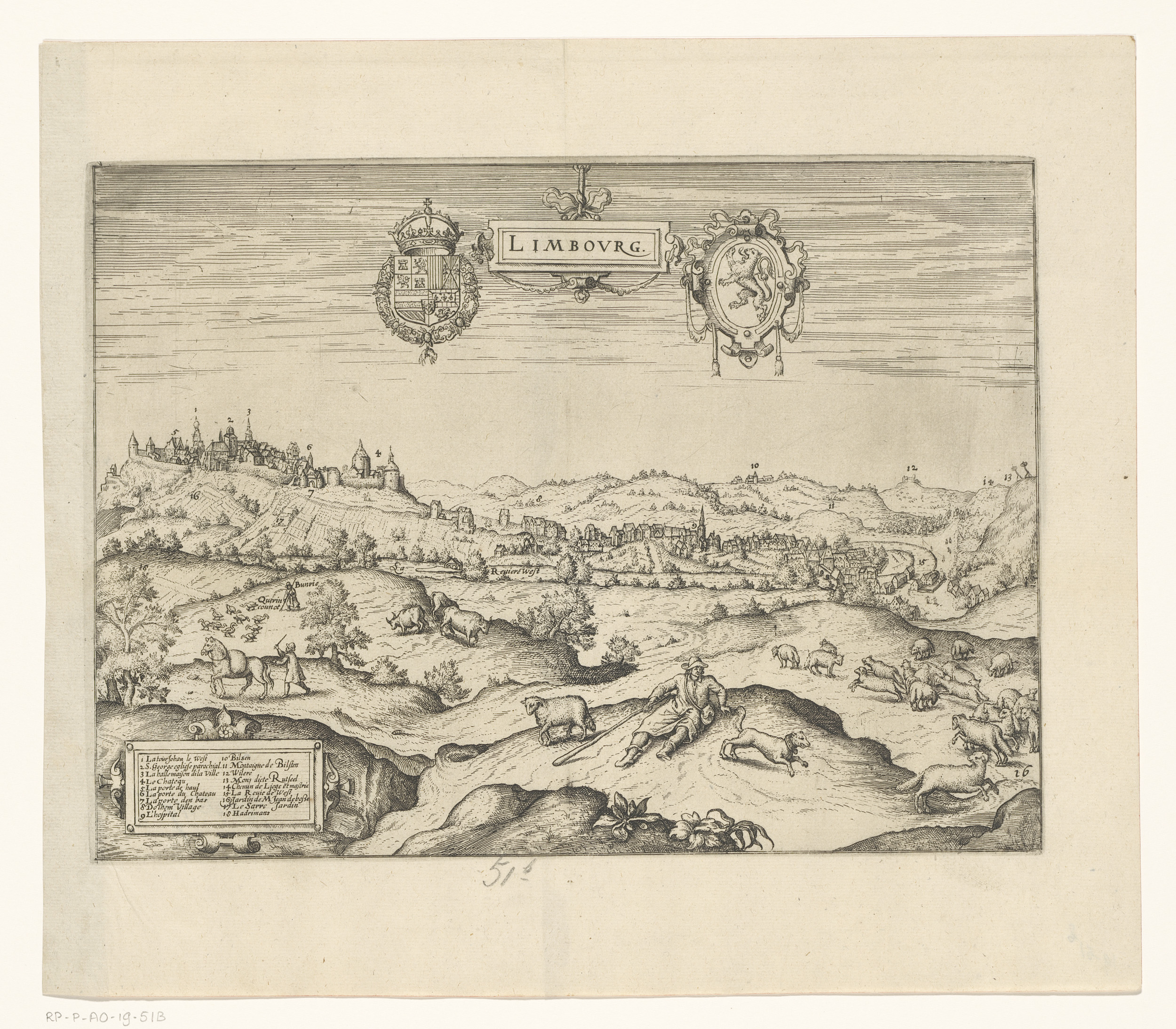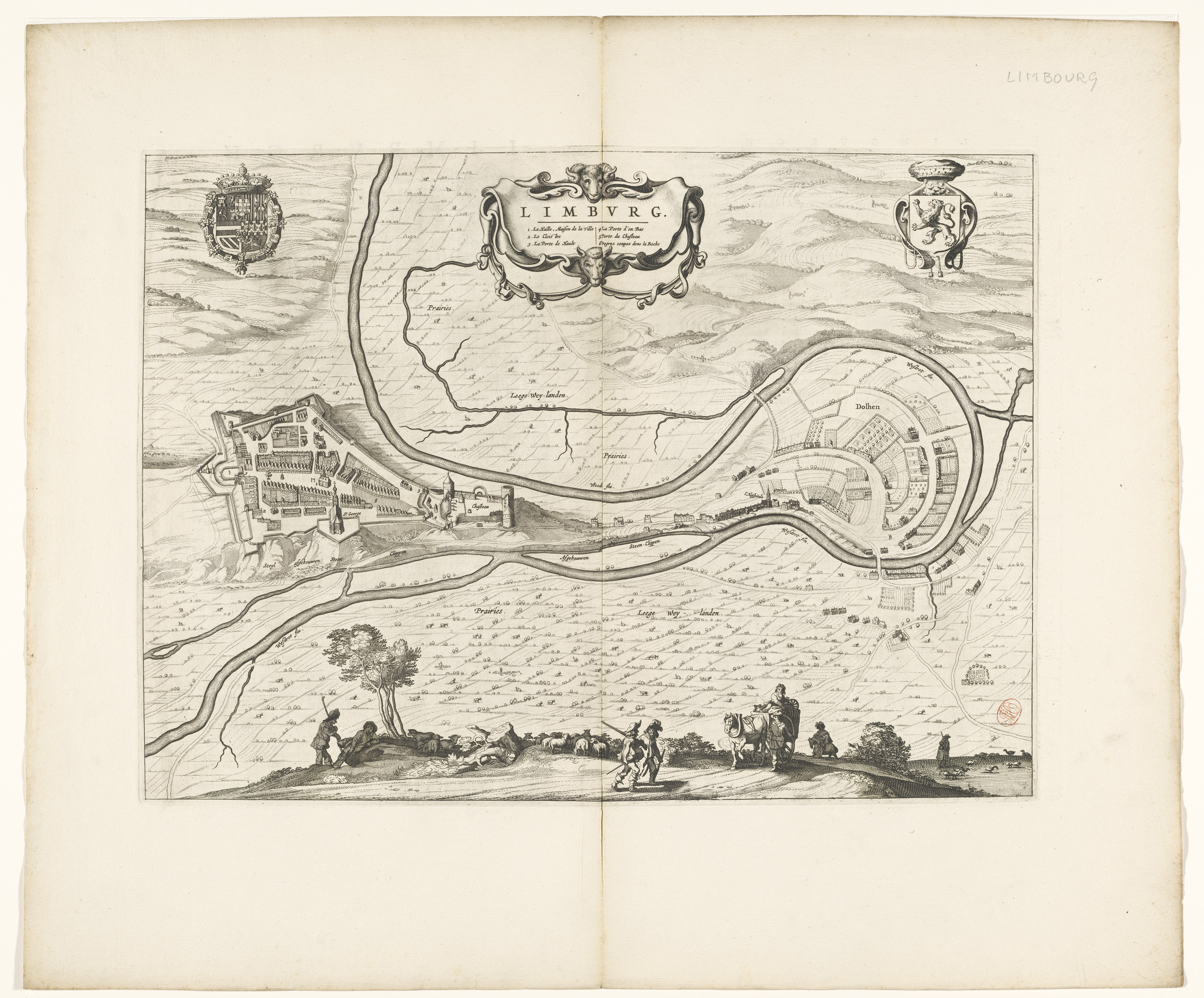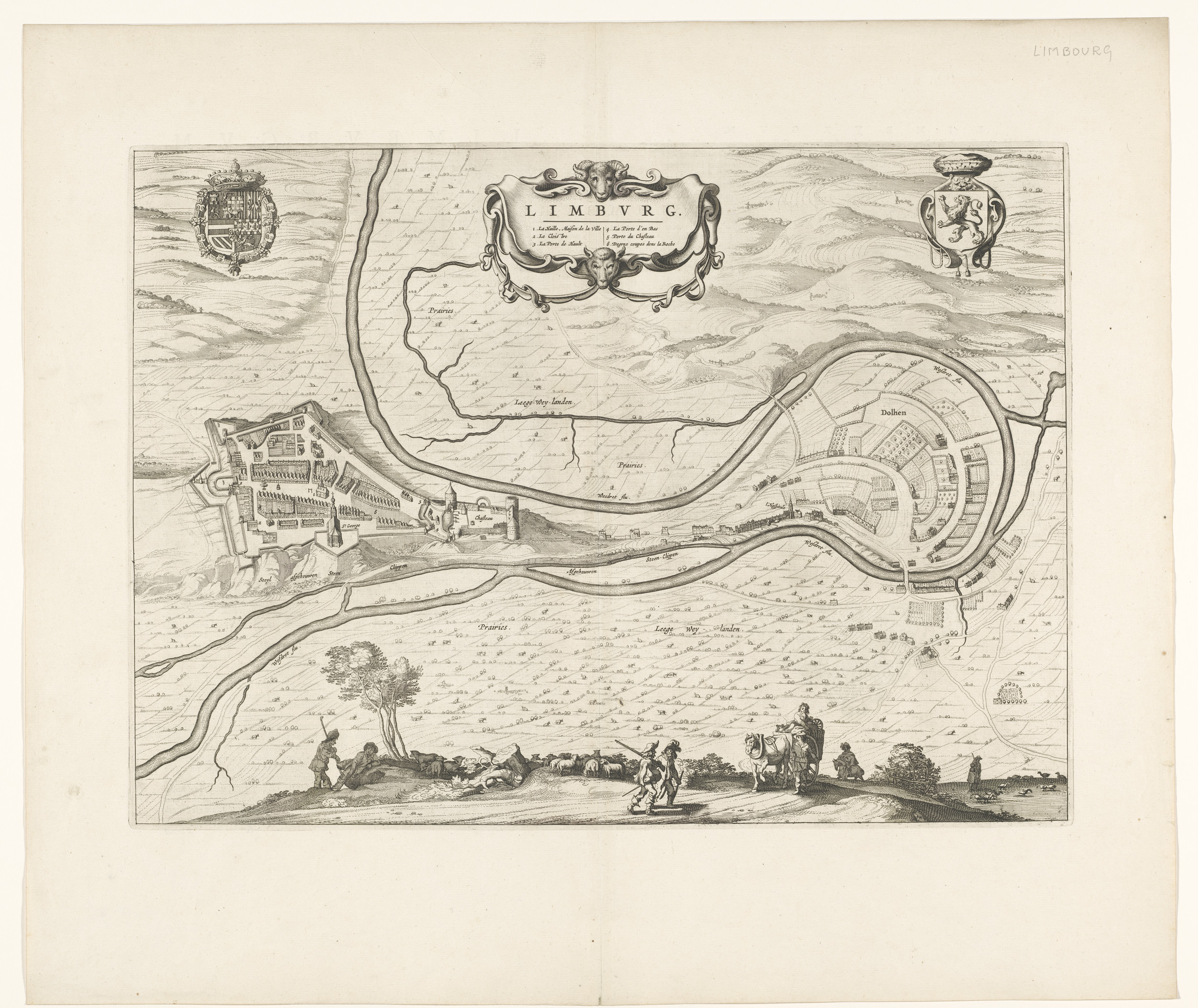 Kaart van het hertogdom Limburg met een gezicht op d...