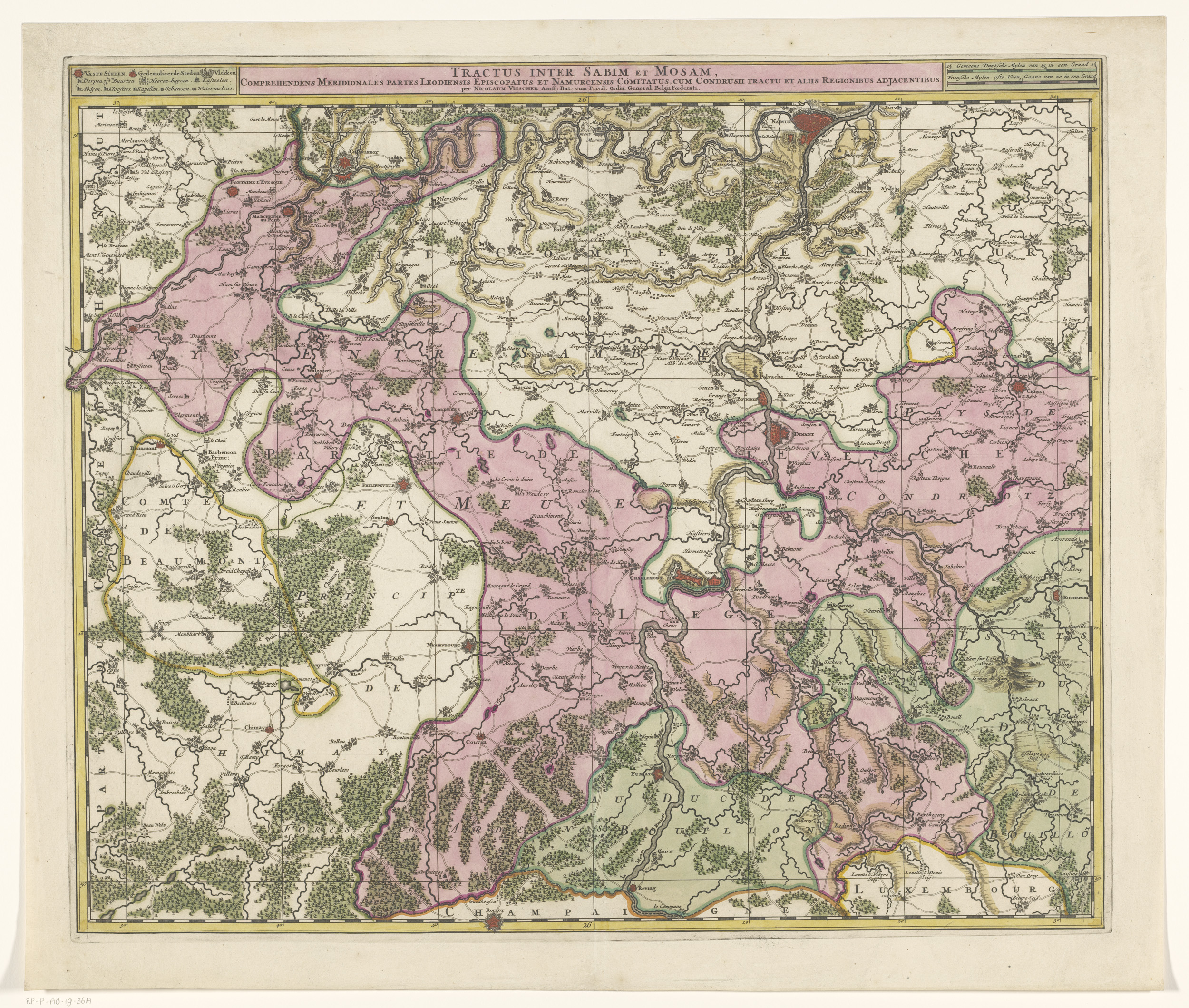 Kaart van de streek tussen de Samber en de Maas