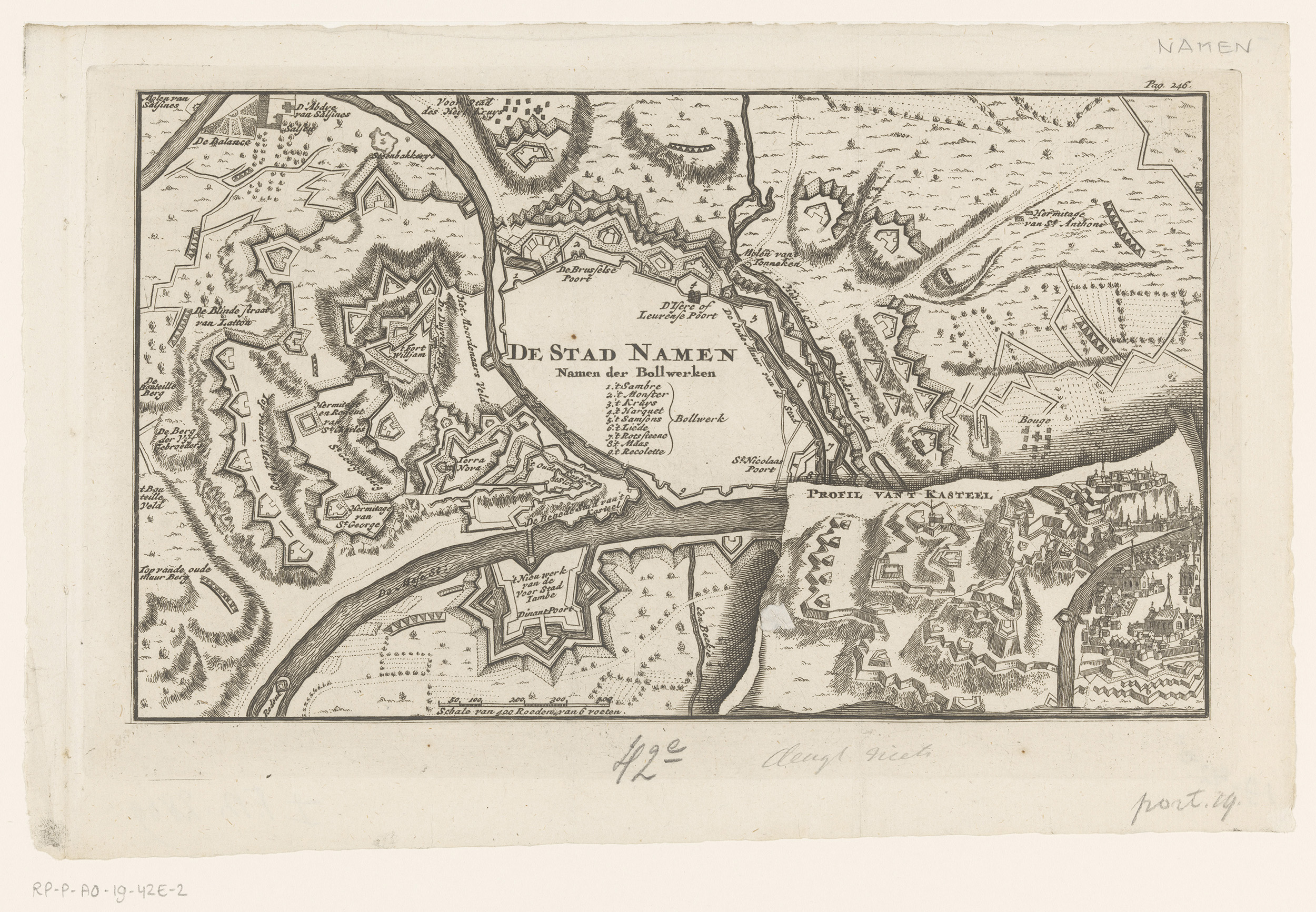 Vestingplattegrond van Namen en een profiel van het ...