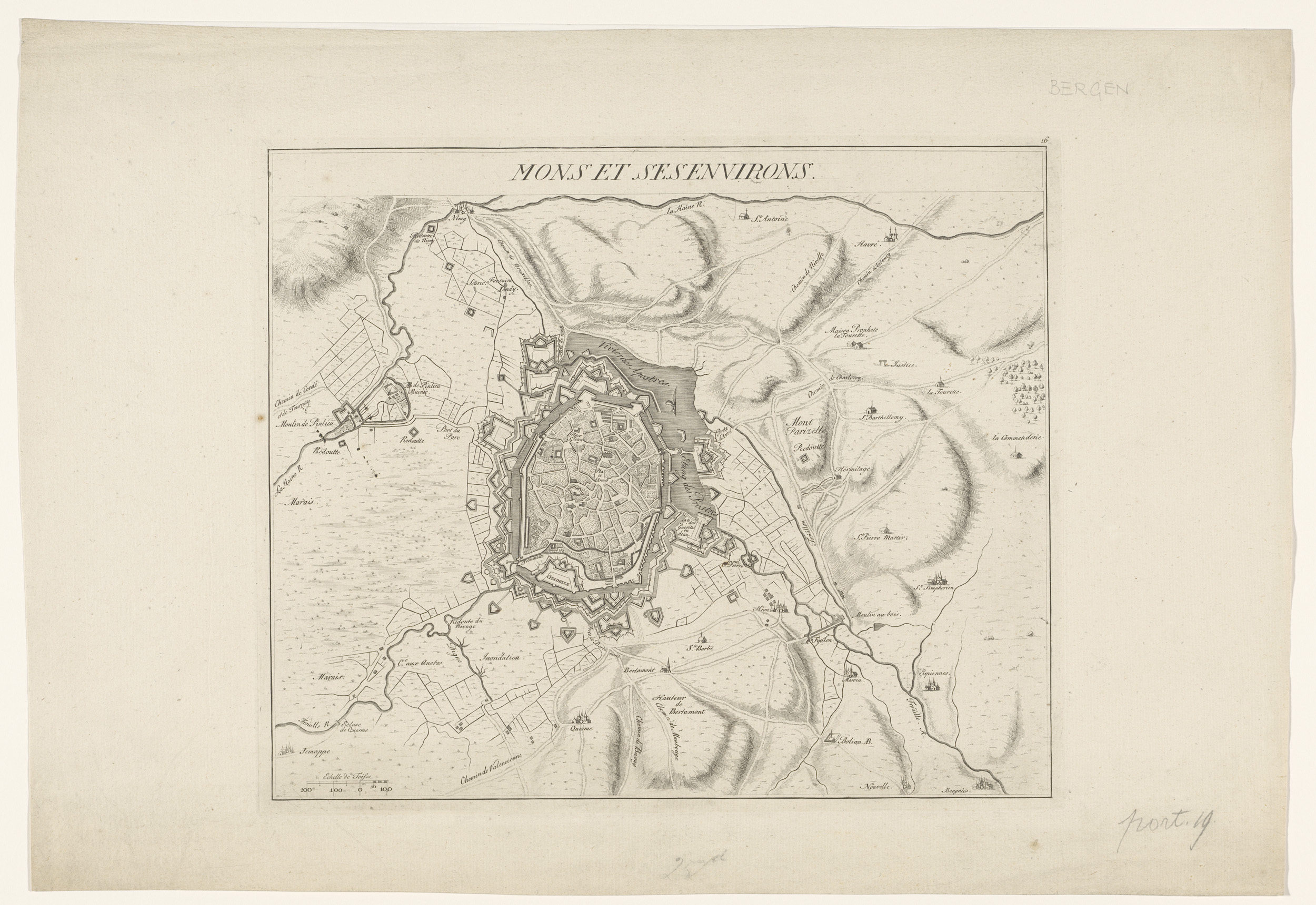 Vestingplattegrond van Bergen (Mons)