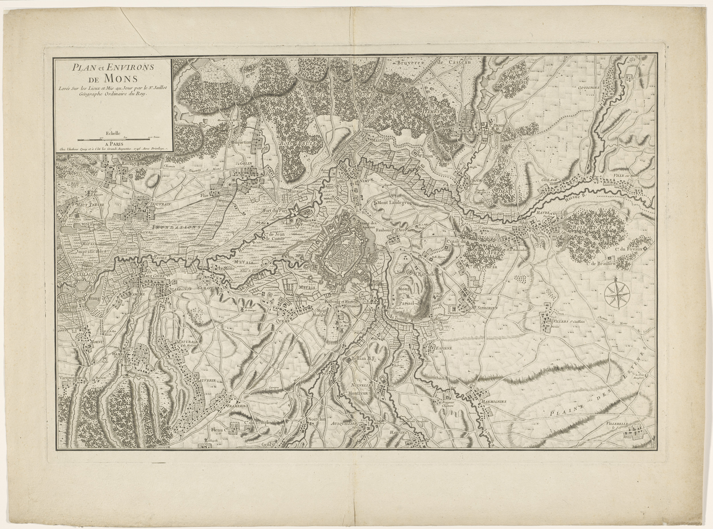 Plattegrond van Bergen (Mons) en zijn omgeving