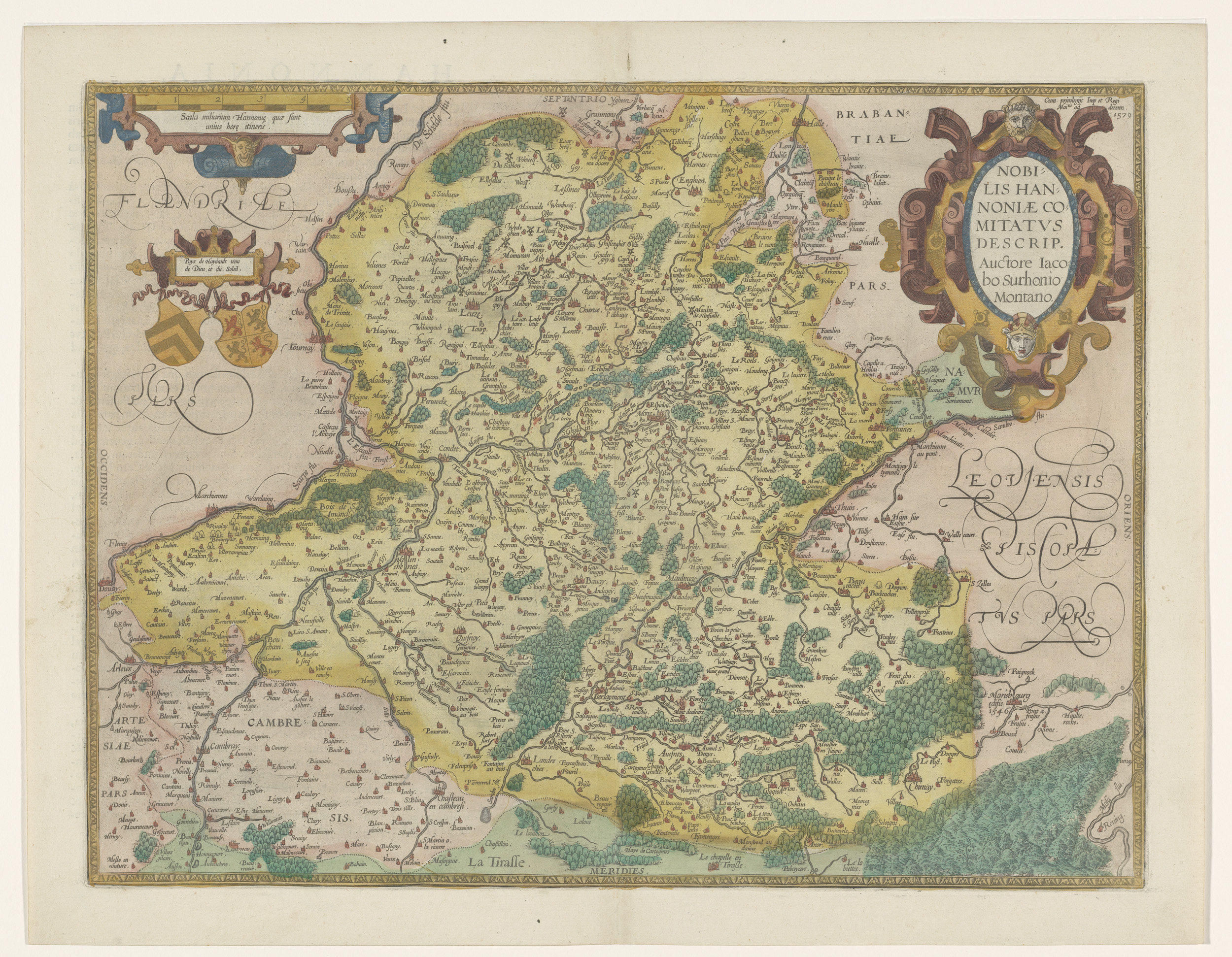 Kaart van het graafschap Henegouwen, met een gezicht...