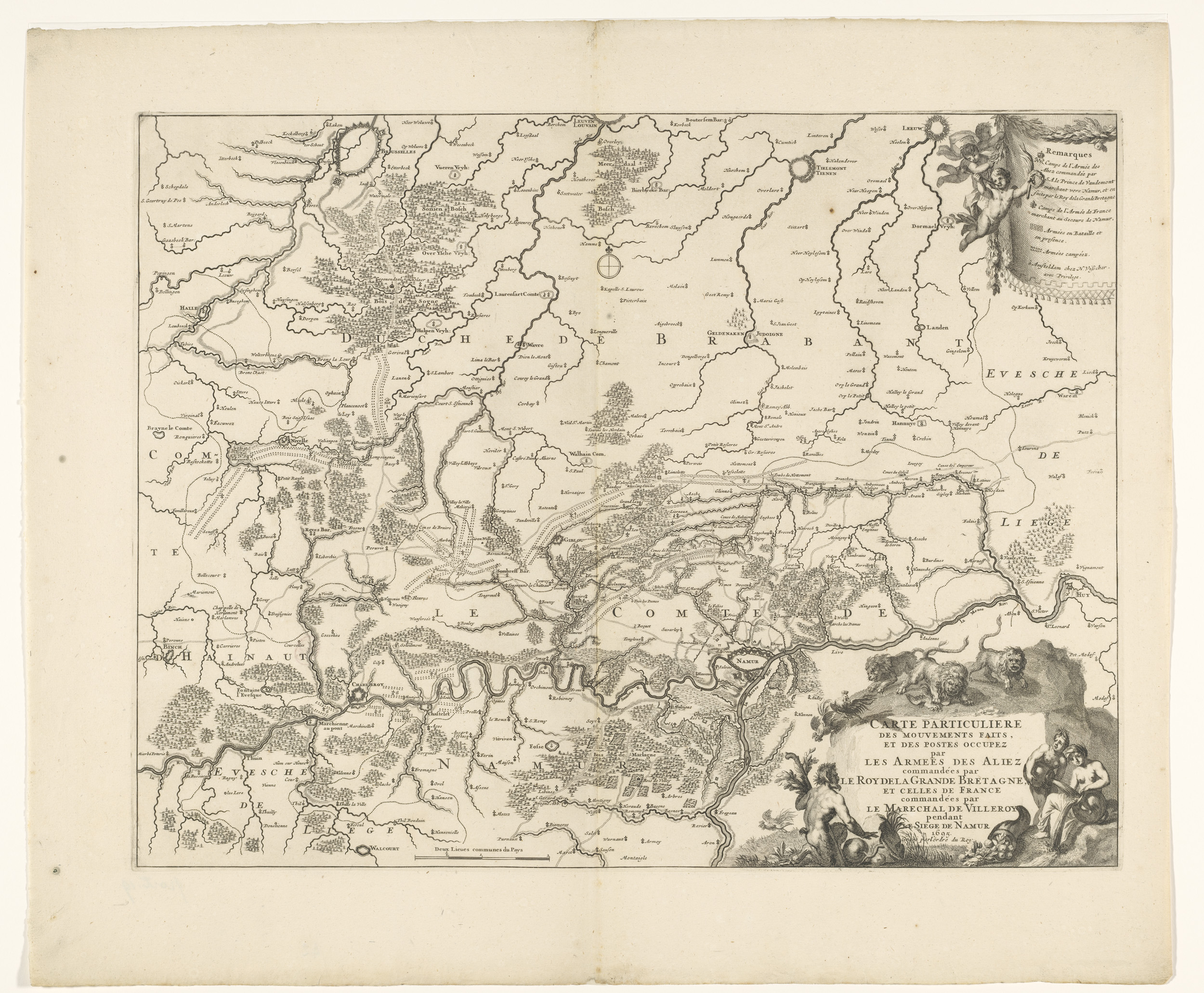 Kaart van het graafschap Namen met de posities van d...