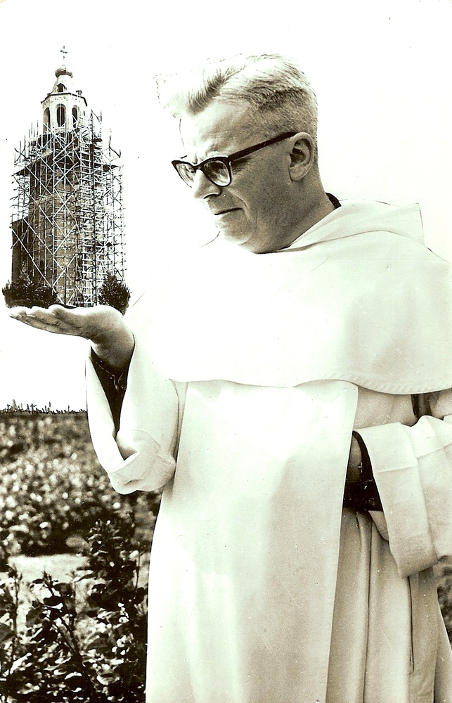 De bouwpastoor v. Kessel draagt de toren op de hand.